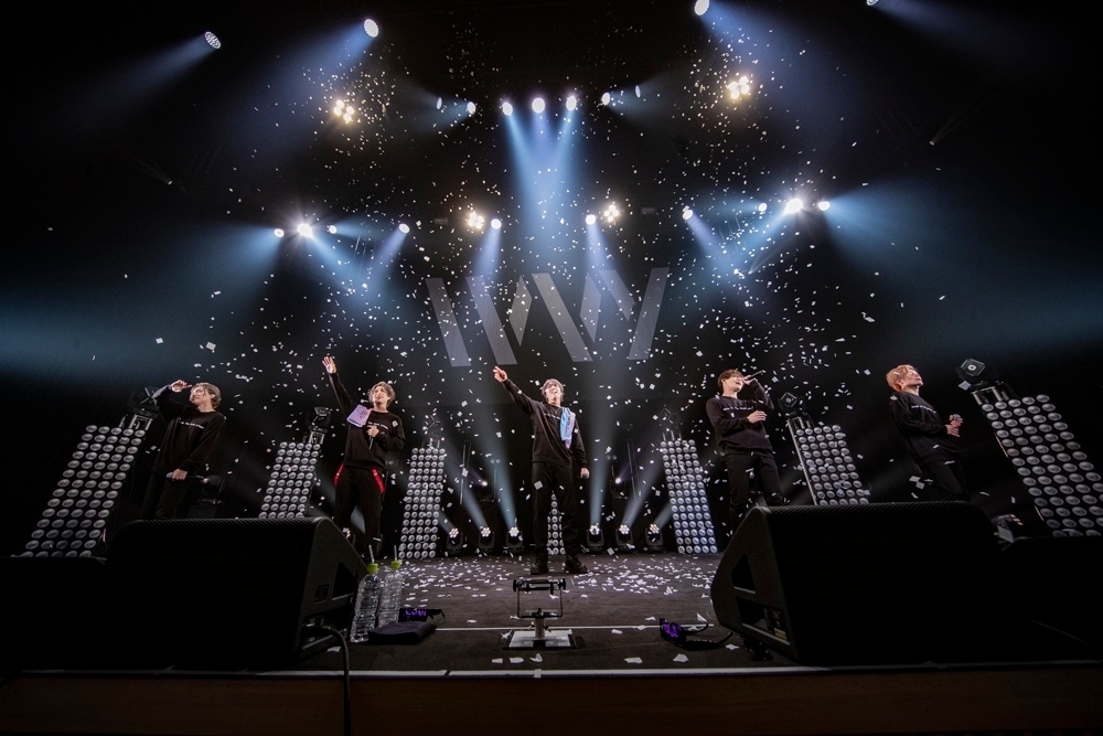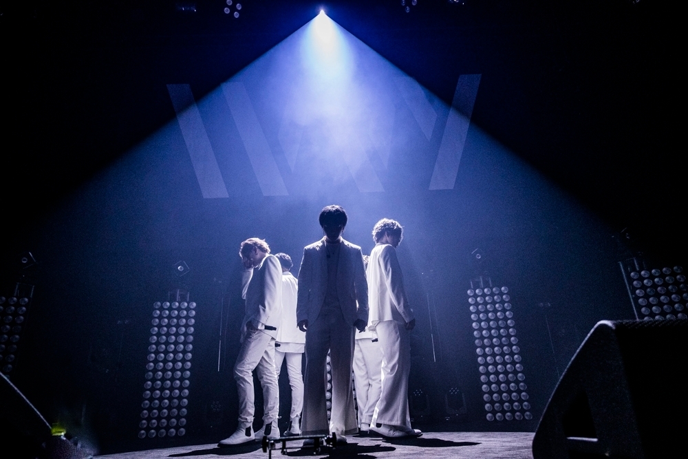 思いがけないTOSHIKIのソロ、新体制IVVYを新曲とともに披露というサプライズ続きの展開に高揚しまくる場内。照明が再び暗転し、「R.O.A.D(skit)」が流れたあと、黒い衣装に着替えて現体制のIVVY、5人が再び登場。卒業するTOSHIKIがセンターにポジションをとったところで、アルバムのリード曲「Wanna be」をアクトしだすと、声と音とパフォーマンスで場内に華やかな空気が満ちていく。と思ったら、突然音がストップ。KENTO.iが「これは演出じゃないですよ」とすぐさま説明しハプニングが発生したことを伝え、この後もう一度頭から「Wanna be」をパフォーマンスするという嬉しいハプニングにファンは大喜び。キュートに見えるが想像以上にハードなのだろう、カレーを作る“クッキングダンス”を連続で披露することになり、「“Wanna be”のダンス、連続はキツイわ~」とTAIYUが息を切らしながら思わず本音を漏らしたところはご愛嬌。息が落ち着いたところで、HIROTOから2022年に新体制IVVYのお披露目ツアーを開催することが伝えられると、場内は盛大な拍手が沸き起こった。