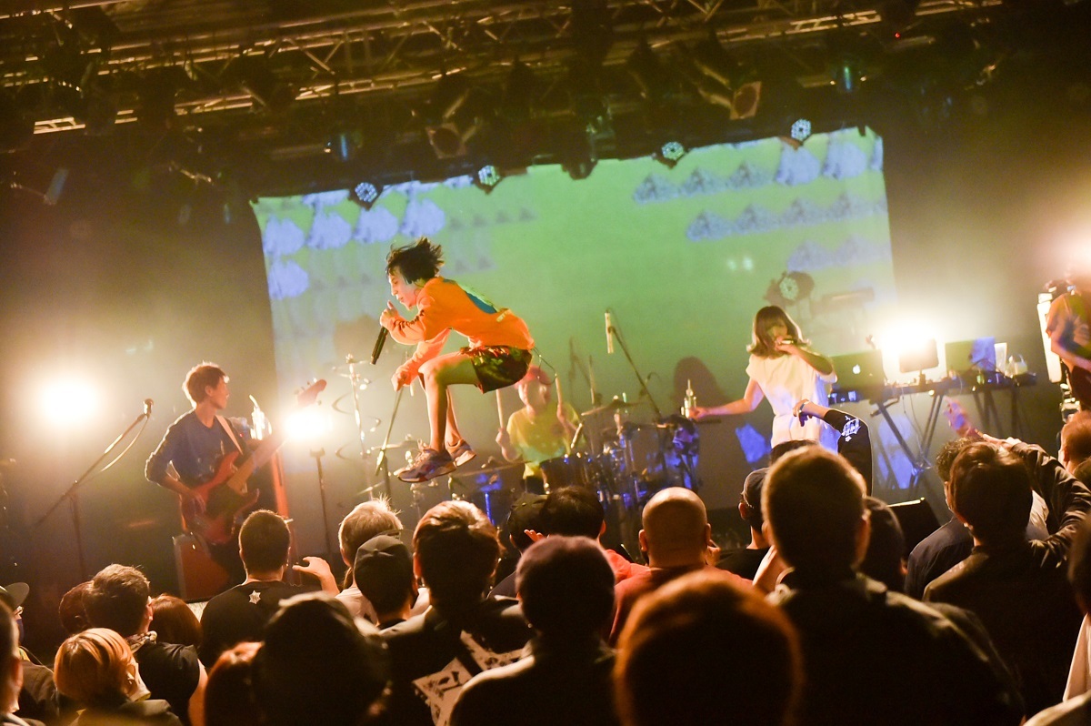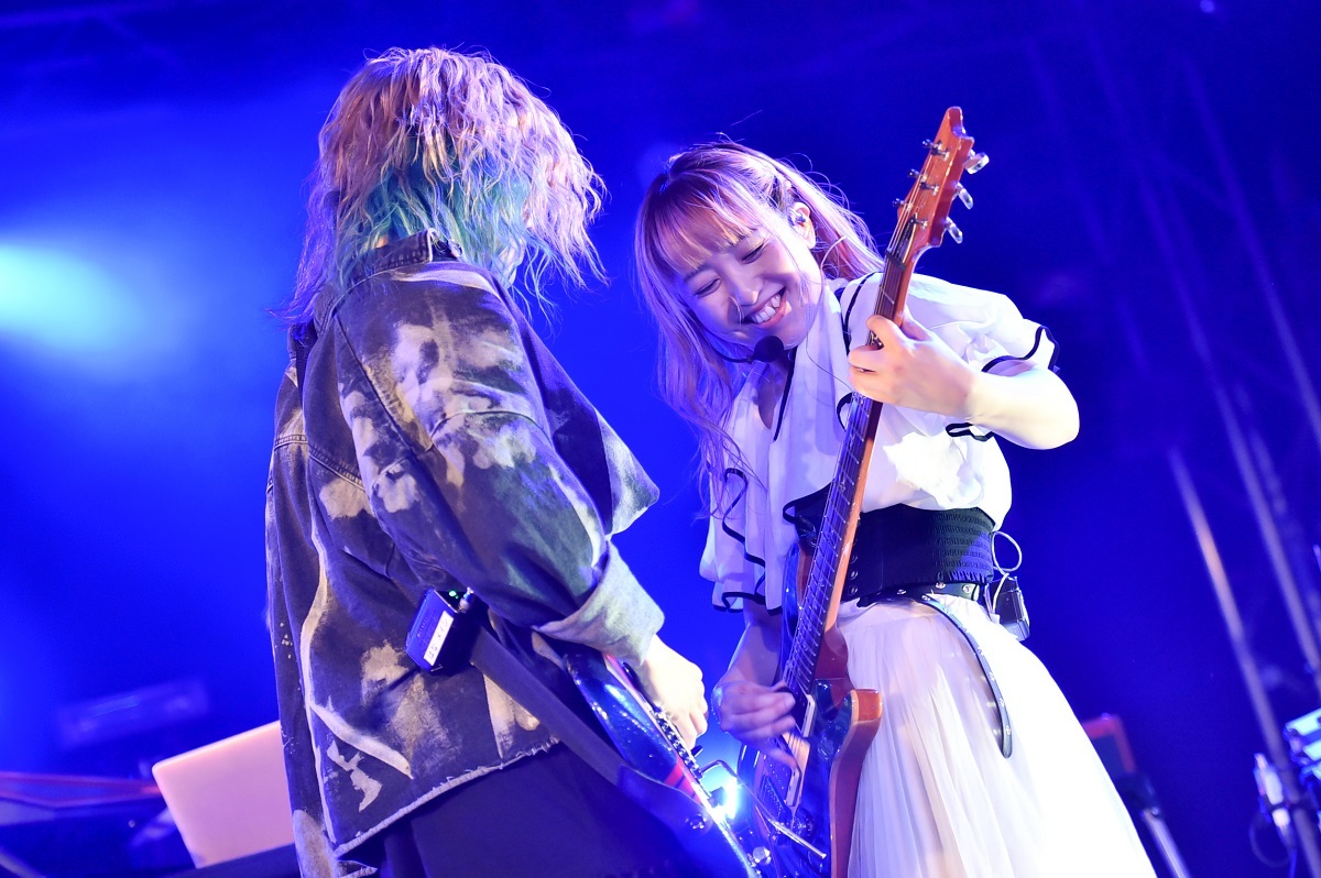 「おぉー、みなさんいい感じだね」とgariが興奮気味にしゃべるほど、この曲で完全無敵の楽しい空間を作ったところから、《愛してみたいんだ、自分を》と、“自分を癒せるのは自分”というバジルの心の叫びを歌った「NEW ME」では、ウイ・ビトンの速弾きが間奏で大暴れ。激しい感動に包まれたあと、最後はやはりましょ隊らしく楽しさ全開の「冒険の書1」で締めくくって、パーティーは終了した。