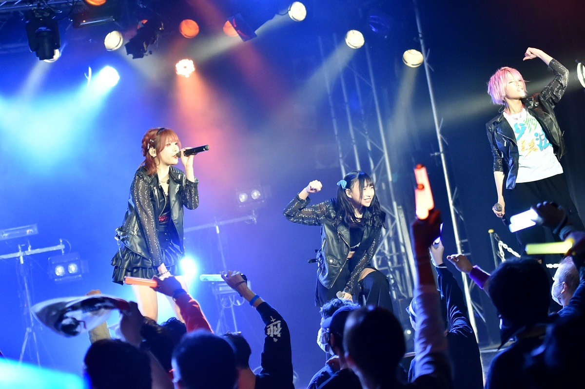 ことのがマイクを握ってフロアを見る。「叶うか叶わないか分からないから夢を諦める。そういうのって、違うんじゃないかなって私は思う。本当にやりたいのか、叶えたいのかどうかなんじゃないの? 今日もこのスリーマン、やりたいからやった。君たちも来たいからここに来たんでしょ? 熱くなりたいからここにいまいるんでしょ? 君たちが足を止めないように。限界っていう天井の先になにがあるのかを知ってほしい」と熱いMCで、“神奏曲”シリーズを締めくくる最新曲「神奏曲:ライトニング」へとつないでいく。「BAD CAKE」とはまた違うハイブリッドなミクスチャーなこの曲。《BANG BANG BANG!》で粋なキメを入れながらラップするよいこ。自分たちは限界を作らず、夢を現実に変えてきた。その姿を最後、神激をここまで引っ張ってきたオリジナルメンバーのいもことことのが声を重ね、歌い上げるシーンは胸に込み上げてくるものがあった。