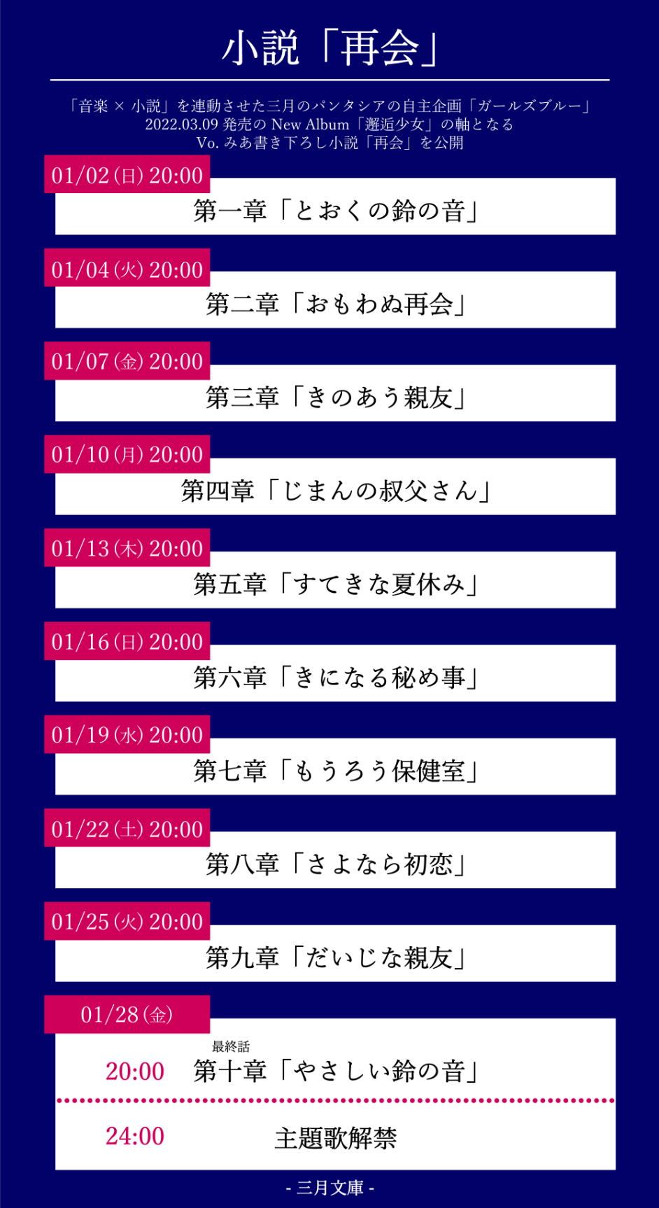 三月のパンタシアのニューアルバム『邂逅少女』から、小説『再会』のWeb公開が2022年1月2日(日)よりスタートした。