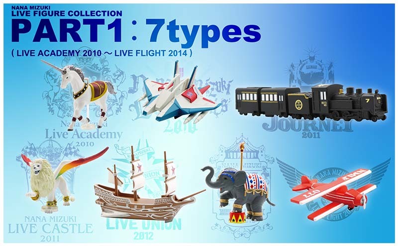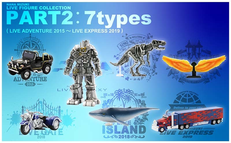 さらに、水樹の歴代ライブで登場したステージセットの乗り物がフィギュアになった『NANA MIZUKI LIVE FIGURE COLLECTION』をオンラインガチャガチャで発売することも決定した。