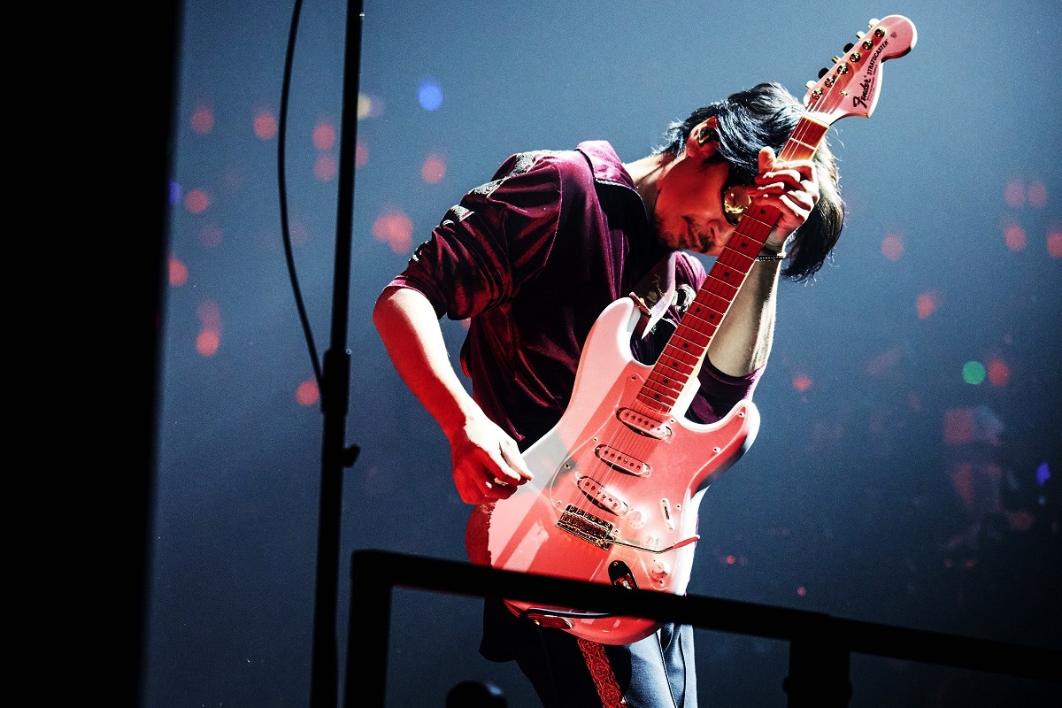 「EVERLASTING」から「MY HEART DRAWS A DREAM」へと繋がれるとき、セットのソファーにもたれかかるように座り込み、切なさを含んだ美しいアルペジオ弾いていた自然体なkenの姿も、とても印象深くこの日の記憶の中に残った。オルタナティヴロックやハードロックからの影響を感じさせるkenが奏でる日本人離れした鮮やかな泣きのギターフレーズは、kenにしか描き出せない個性である。