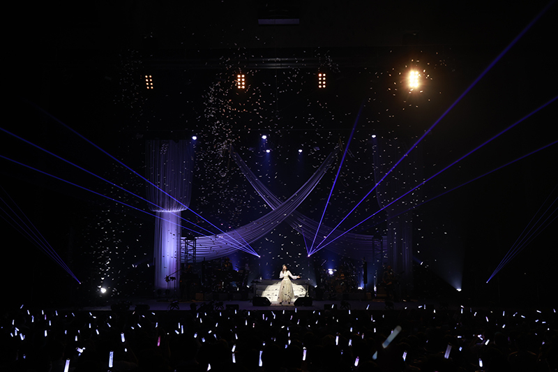 ついにライブも最後の曲へ。再びCMBのメンバーを呼び込むと舞台袖からダッシュで元気にステージを走り回って登場。「どこへ行ってもいつも愉快だし、演奏はカッコいいし、本当にありがとね……」とまるで別れを惜しむかのように、語りかけていく。改めてメンバーひとりひとり、名前を呼びかけ深々とお辞儀をすると「私とみんなの始まりの歌です」と「純白サンクチュアリィ」を披露した。その目に涙を滲ませながらも、最後は堂々と歌い上げた。アウトロで純白の羽が舞い散る中、「どうもありがとうございましたー!」と笑顔でフィナーレを迎えることが出来た。