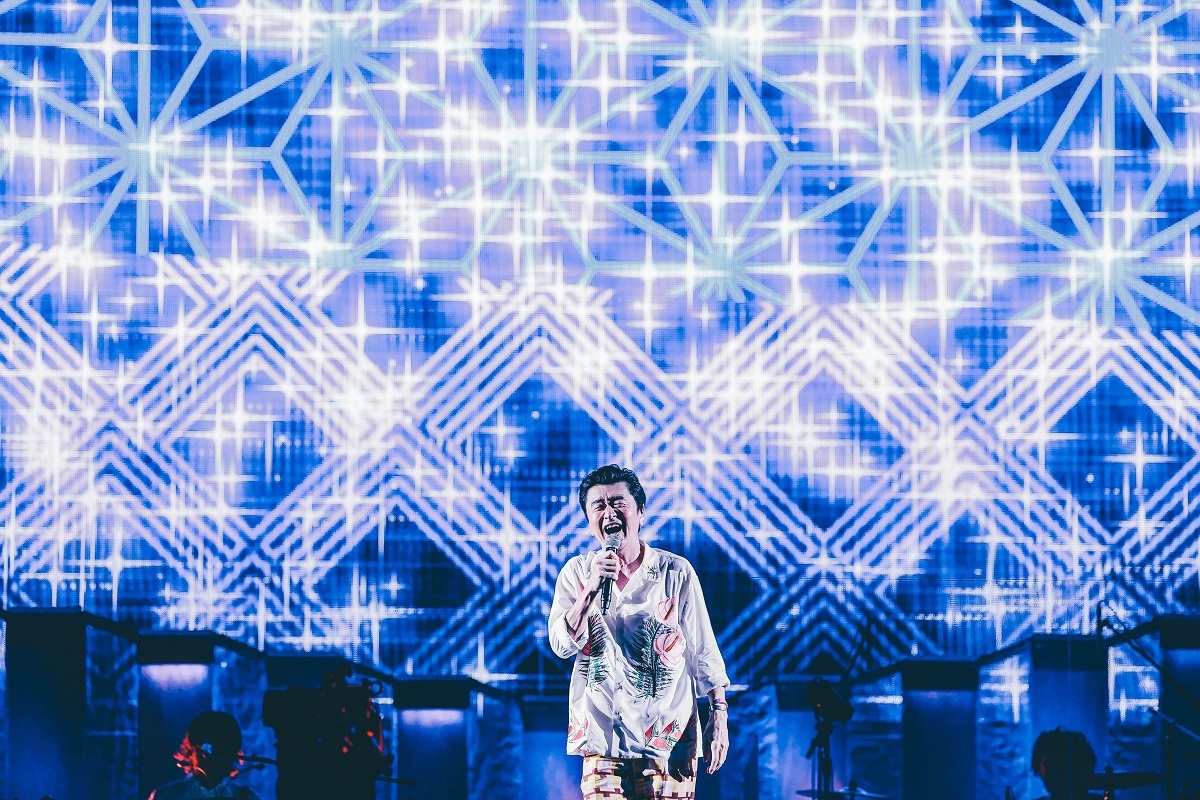 桑田佳祐のソロでの4年ぶりとなる全国ツアーの横浜アリーナ初日のステージを観た。9月18、19日の宮城・セキスイハイムスーパーアリーナから始まり、全国10箇所を回るツアーのセミファイナル公演。アリーナ内に入った瞬間に驚いたのは人の多さだった。コンサート会場の“一席おき”にすっかり慣れてしまっていたので、こんなに多くの人が集っている景色を見るのは久々だ。観客数はガイドライン収容範囲内の12,000人であり、コロナウイルス感染防止対策を徹底しての開催なので、キャパシティ制限が緩和されてきたことがこうした光景からも実感できる。だがまだコロナ禍の終わりは見えてはいない。さまざまな状況を考慮・配慮しながら、音楽ができること、やるべきことを貫いた素晴らしいライブとなった。