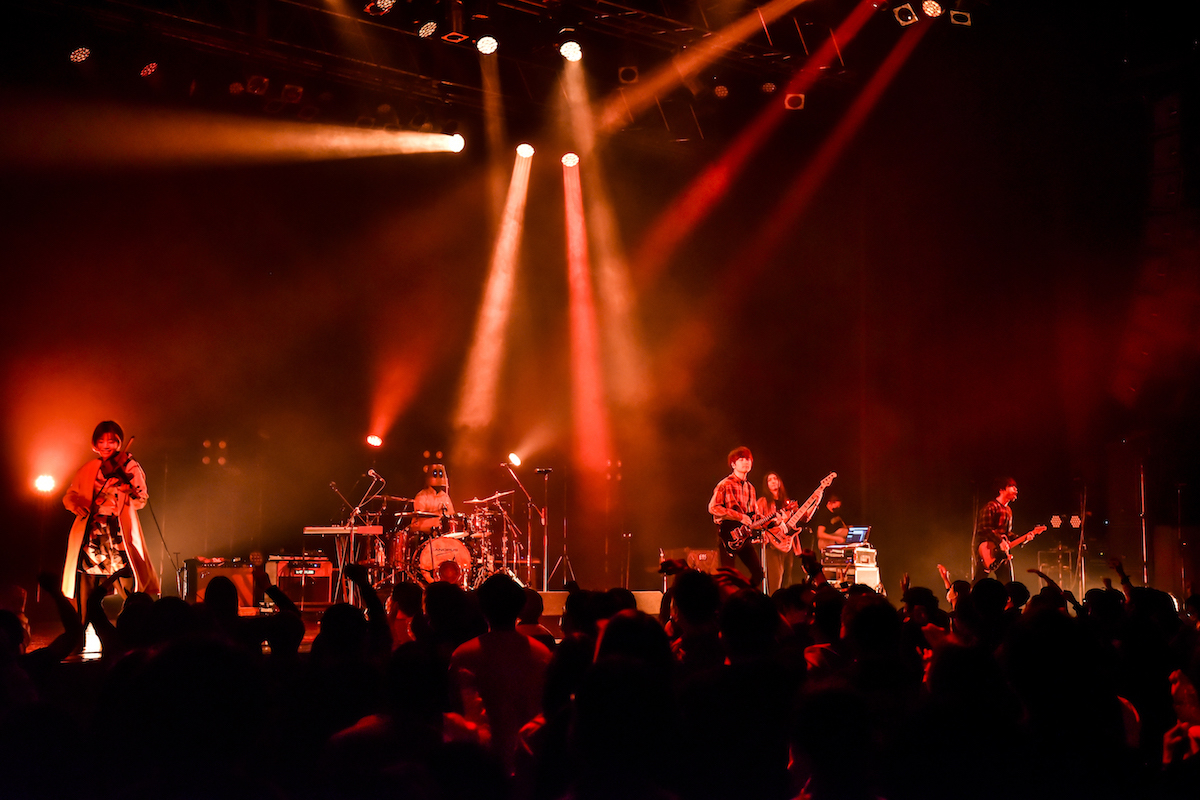 そんな具合にふざけることもあるが、いざ演奏が始まればえげつないほどカッコよく(新曲の「Dance Inspire」が最高)、“高低差ありすぎて耳キーンなるわ”と言いたくなる感じは相変わらず。そんななか、「あのミラーボール辺りにいると思うので」とみんなで“Zeppの神様”に拍手を送った場面はずっと忘れたくないシーンだった。「まだ自由に動けんかもしれないけど、音楽の神様はその時を待って楽しみにしてると思います」「最後の日はロック界の青鬼と赤鬼が来るし、今日は和田アキ子さん来るかもしれないけど……」といったMCを経て、『GT』名物・全編アカペラの「春の海」でシュールな空気感を作ったあと、「ミ・ラ・イ・ノ・オ・ト」で締め。たくさんの汗と涙が染み込んだステージに‟別れそれはスタート”と刻む。