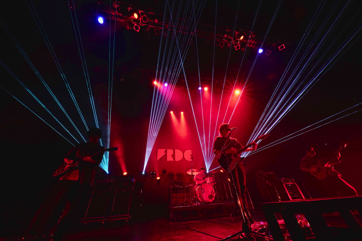 Zepp Tokyo最後の3日間、初日のトリを務めたのはフレデリック。アルカラのMCで和田アキ子の名前が出たのは、TikTokを中心に話題の「YONA YONA DANCE」がフレデリックのプロデュースした曲だから。彼らのライブはその「YONA YONA DANCE」のセルフカバーから始まった。トリを任せられたからには本気で臨もうとワンマンツアーのステージセットをそのまま持ち込んだとのことで、レーザーなどによる照明演出もバッチバチ。歌詞にぴったりのタイミングでミラーボールが回る演出も粋だ。