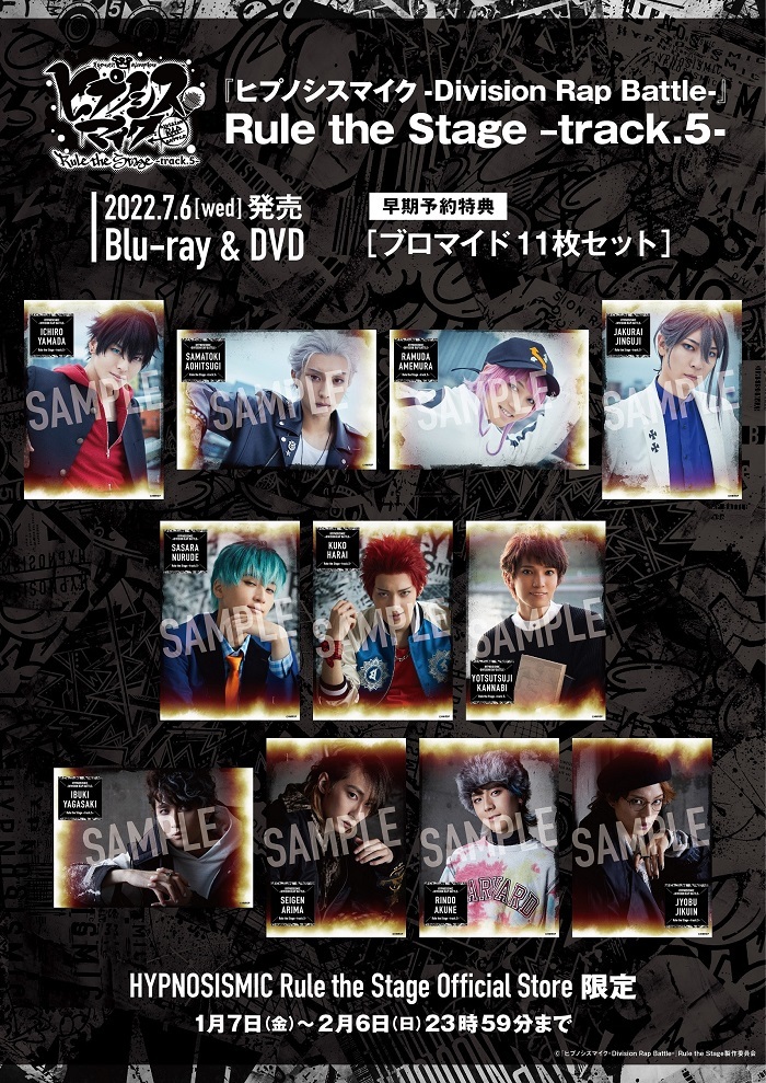 2022年1月7日(金)から2月6日(日)に大阪・東京にて上演されるヒプノシスマイク舞台化第5弾公演『ヒプノシスマイク -Division Rap Battle-』Rule the Stage -track.5-。本舞台の公演の模様をおさめたBlu-ray&DVDとビジュアルブックが7月6日(水)に発売されることが決定した。あわせて、Blu-ray & DVDの店舗別購入特典の内容も公開された。