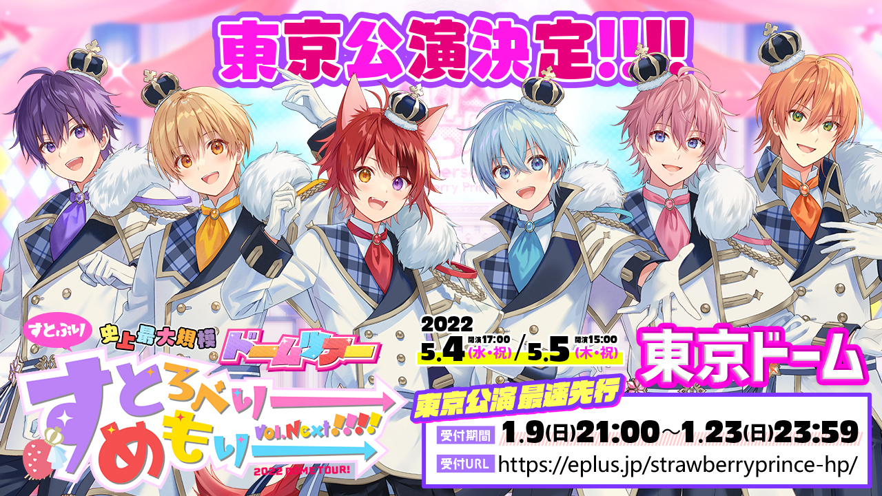 東京ドームワンマンの情報は、1月9日(日) に開催されたすとぷり初のドームツアー『すとろべりーめもりー Vol.Next!!!!』福岡PayPayドーム公演にて発表。同ツアーで、すとぷりは、福岡・名古屋・大阪・東京の4大ドームでライブを開催することとなった。