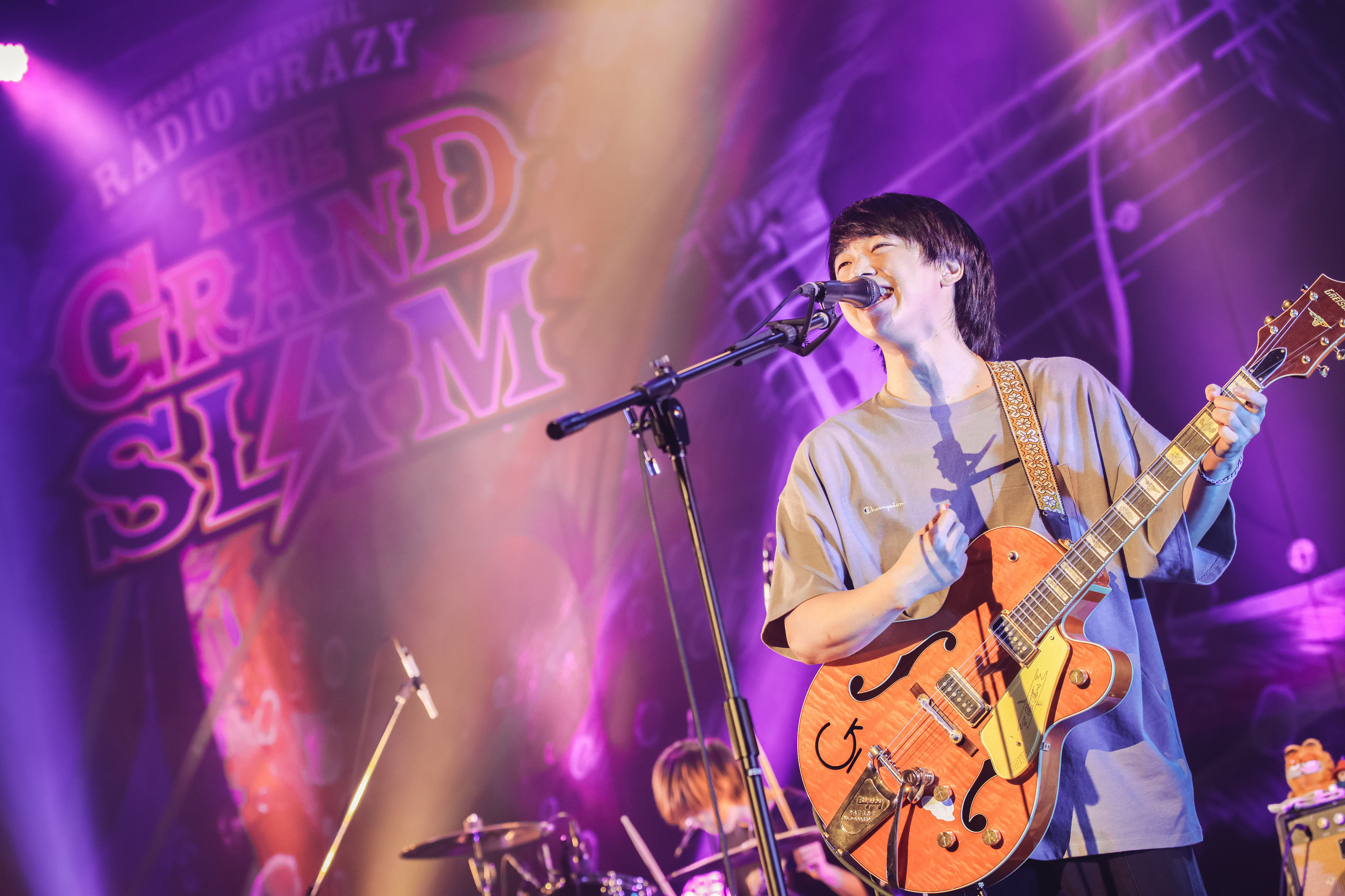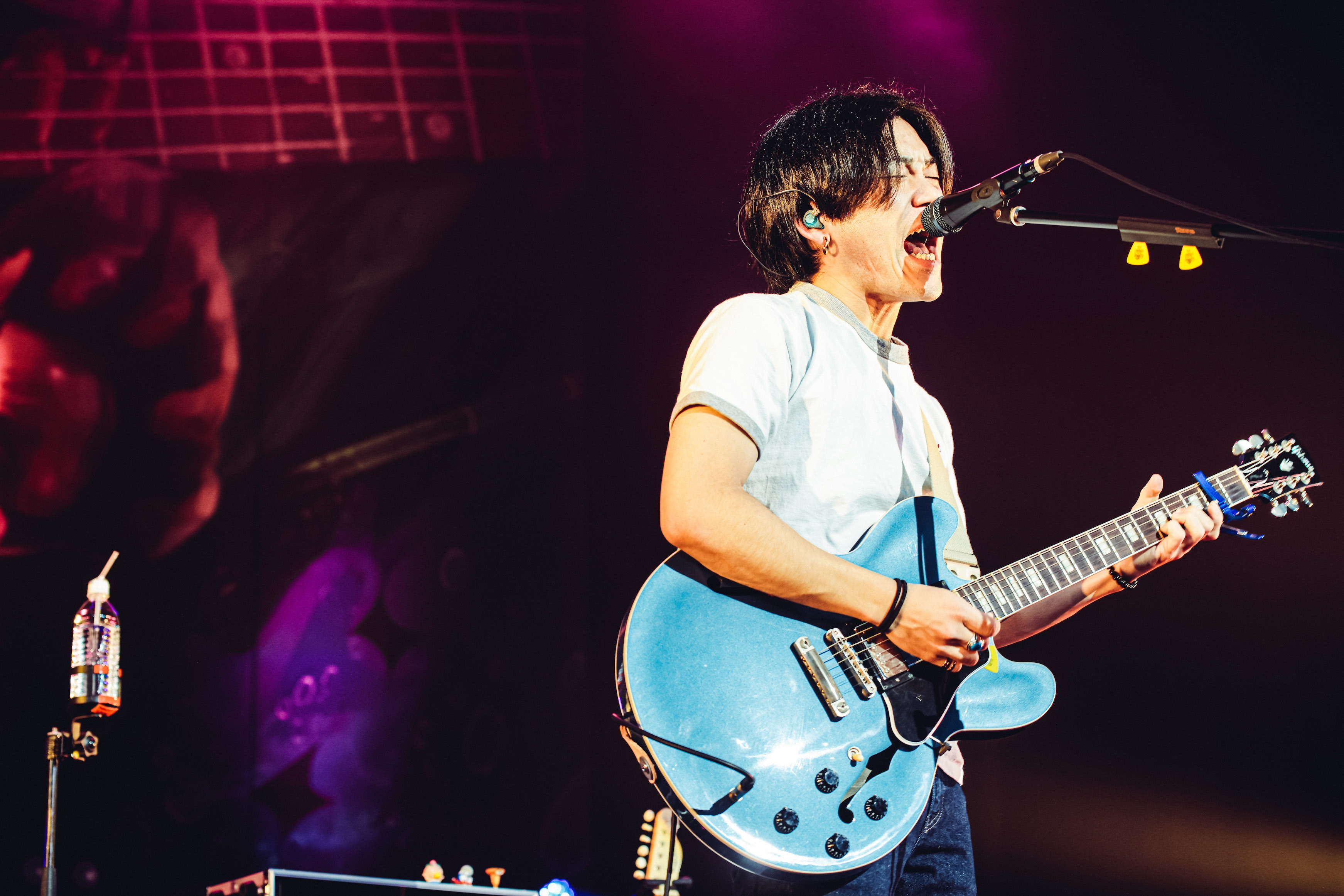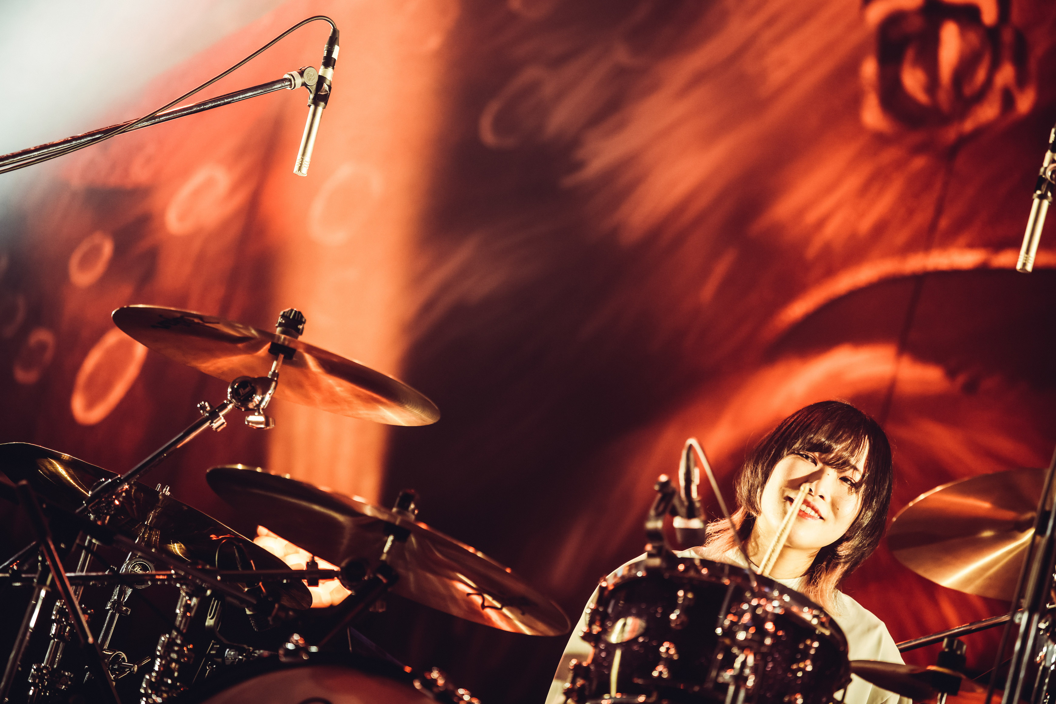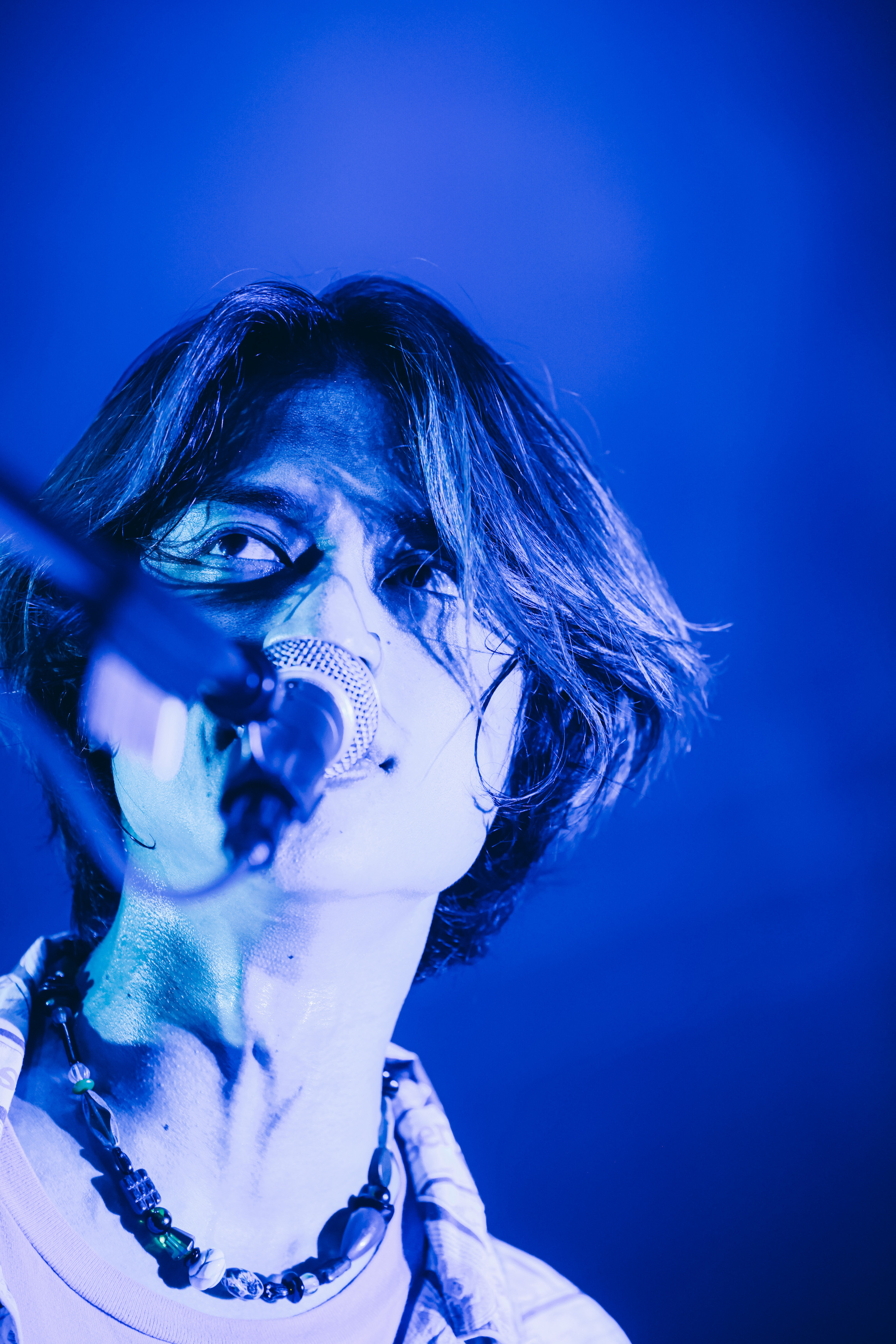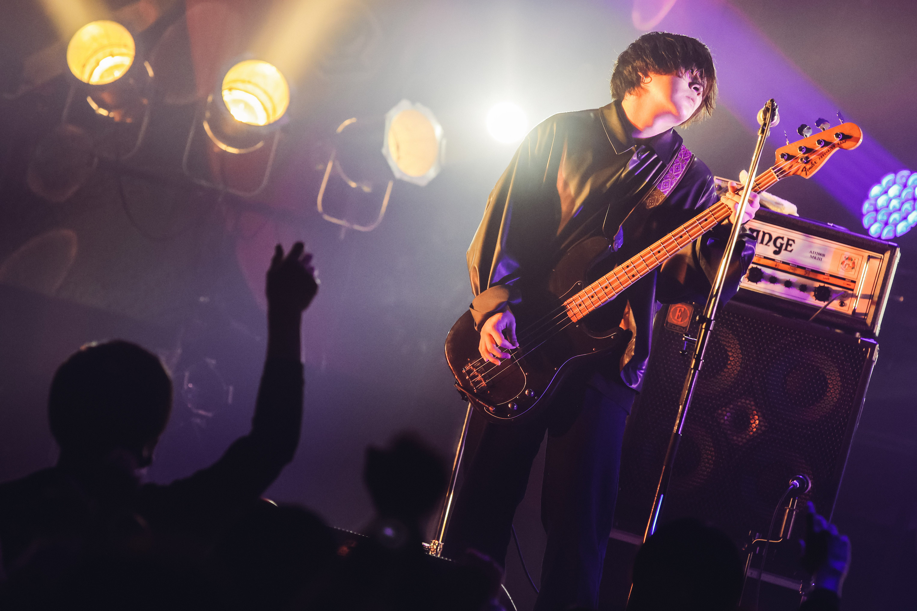 吉河はのん(Dr)のキレのあるビートと阿坂亮平(Gt)のリフがエッジーな旅の歌「ジャーニー」では、<そんなもんで苦しんでる人がこの中に1人はいるでしょうよ。そんなもん壊してやれるような……そんな歌を歌いにきました!!>と叫ぶ。そんな稲生の歌声からは、目の前の人に届けようという強い意思と、稲生のカリスマ性が熱を帯びて伝播し、客席の心はがっちり掴まれる。と同時に、4人の奏でるサウンドが絆で結ばれているように見えた。