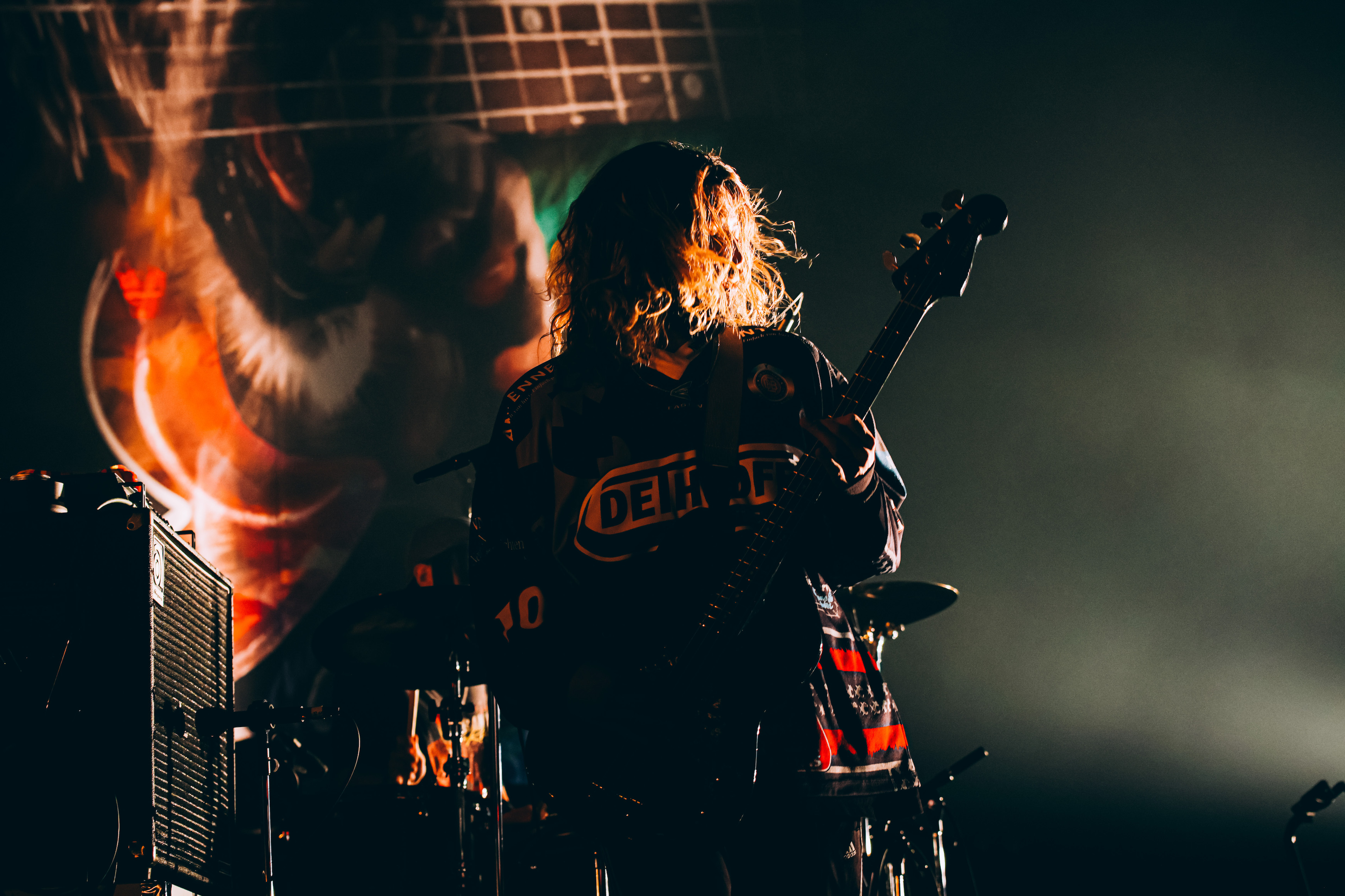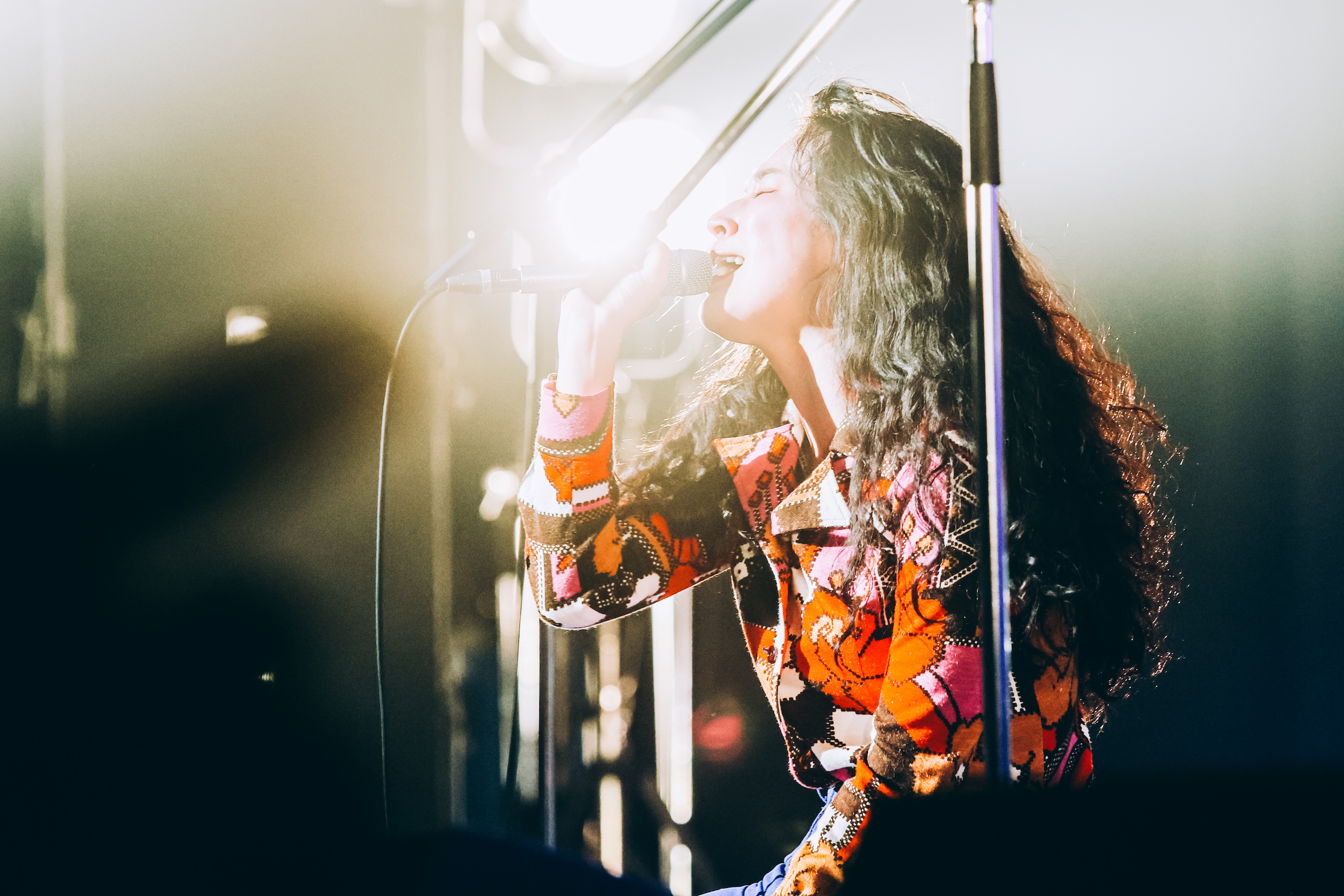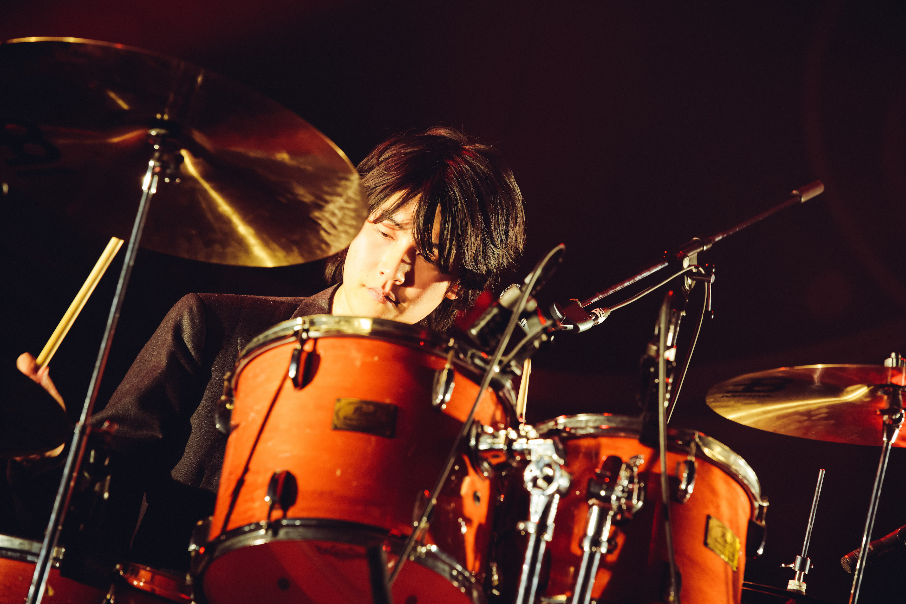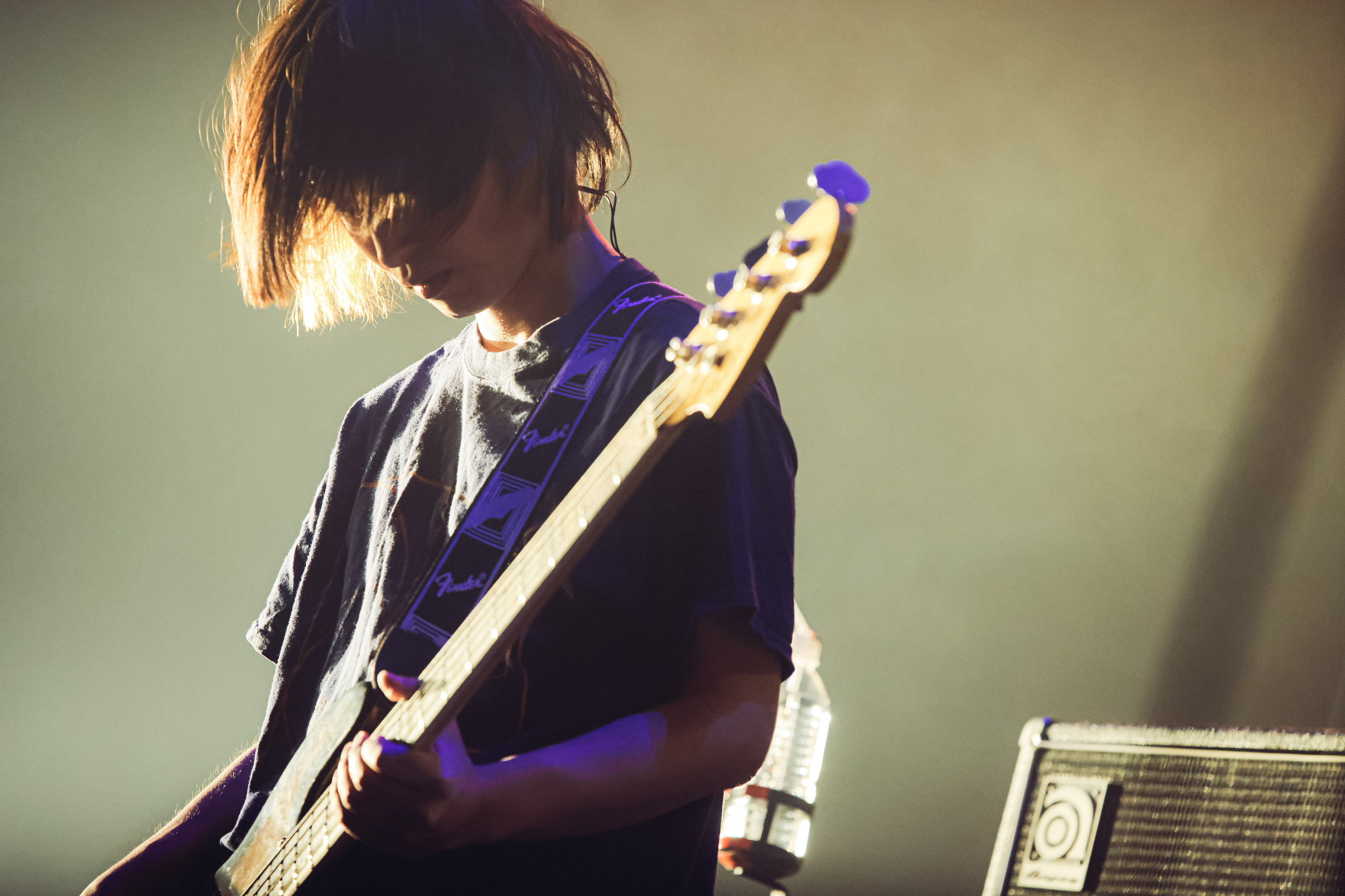 腹の底に響く低音のイントロが最高にセクシーな「Fullface」では、3人とも頭を振り乱してプレイ! サイトウは正座して小さくなって弾いたと思えば、ステージに倒れ込む。渾身のパフォーマンスにオーディエンスも身体を揺らして熱狂する。さらに「lala」で野生的な魅力を見せつける。もともと爆発力のあるバンドだが、見るたびに演奏力が上がっていて、安定感が増し、カッコ良さを更新し続けていることに感動する。