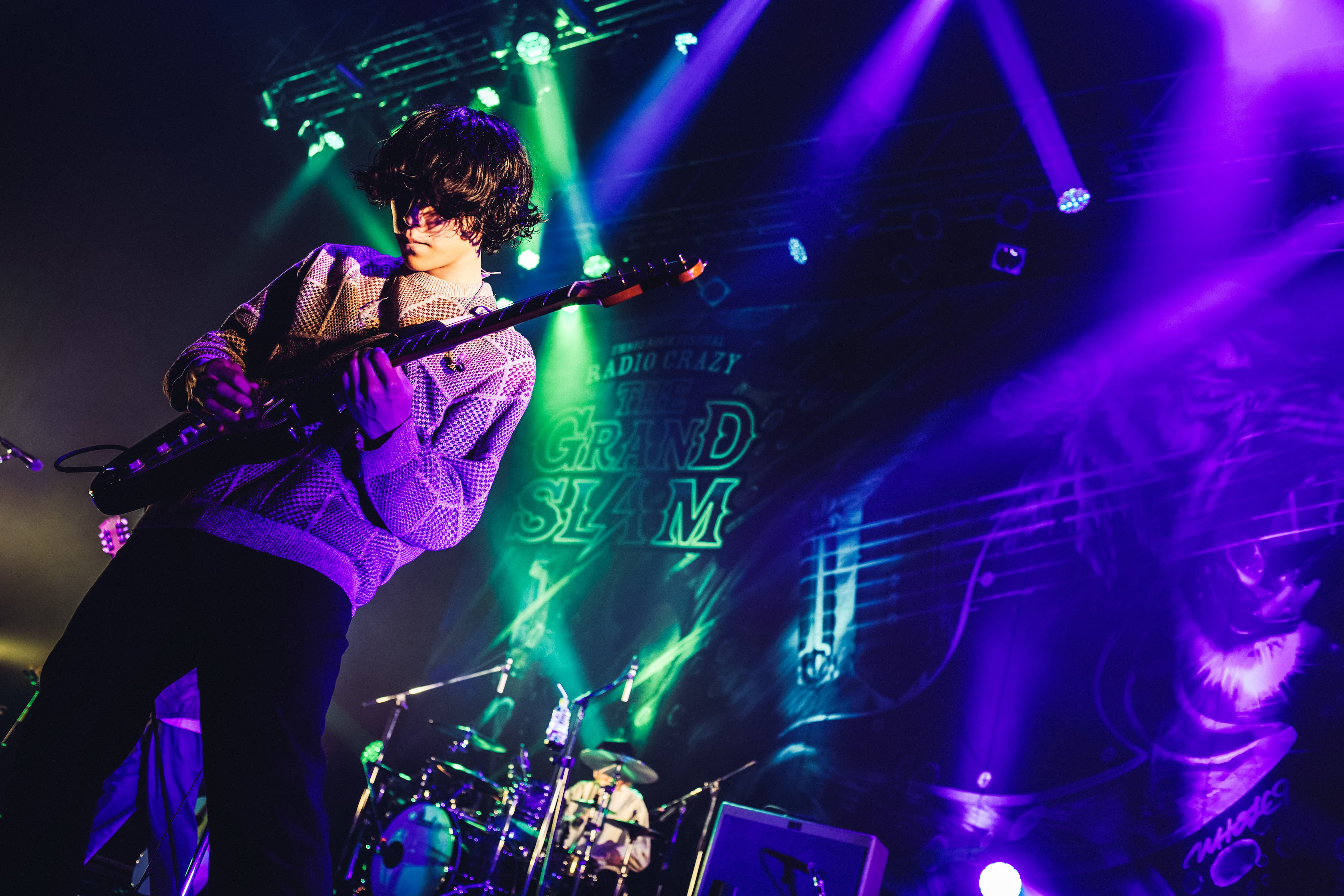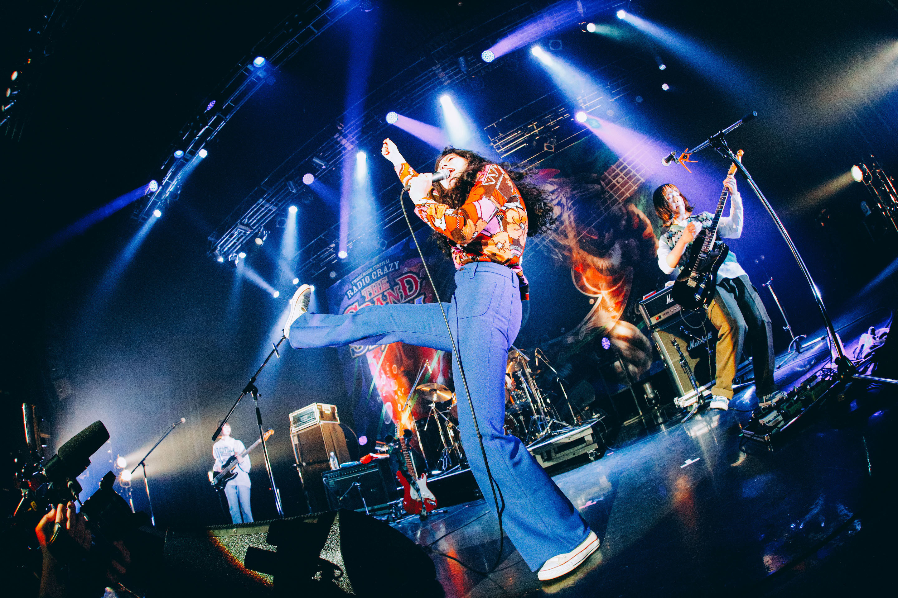出演予定だった2020年の『レディクレ』が中止になったことから、「やっと出れました、『レディクレ』! 実質初めてのステージで本当に嬉しいです。今日色んなバンドがいたけれど、一番大きな声で歌います!!」とハタヤマ。そのままの勢いで「ねぇミスター」をぶつける。サイトウリクト(Ba)がカネダタツヤ(Dr)に向き合いプレイ、ハタヤマはなりふり構わずステージを暴れまわる。