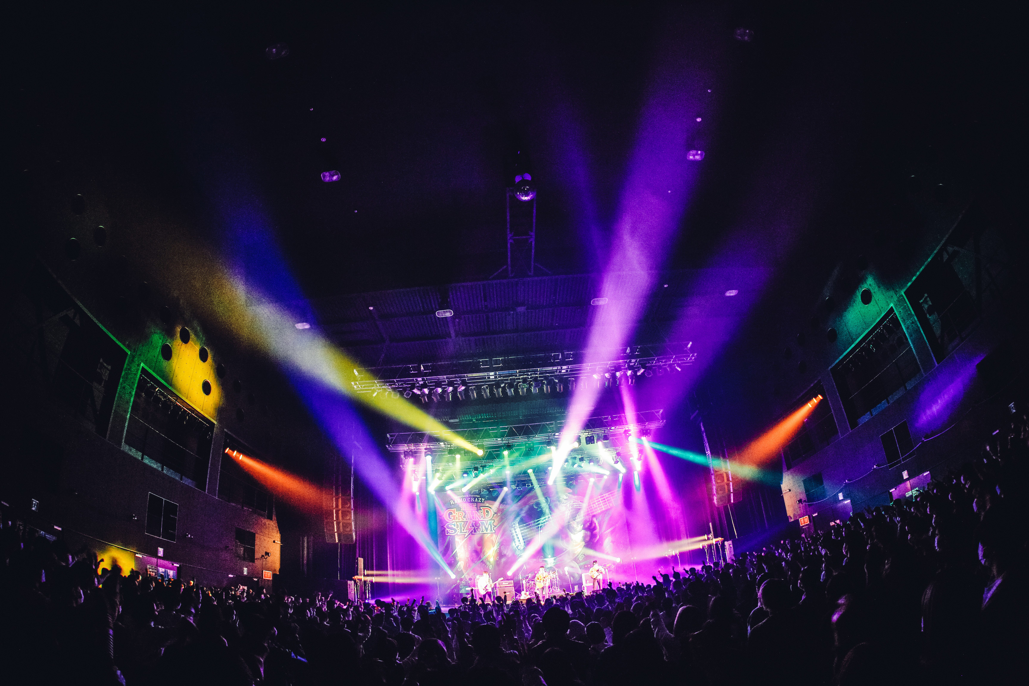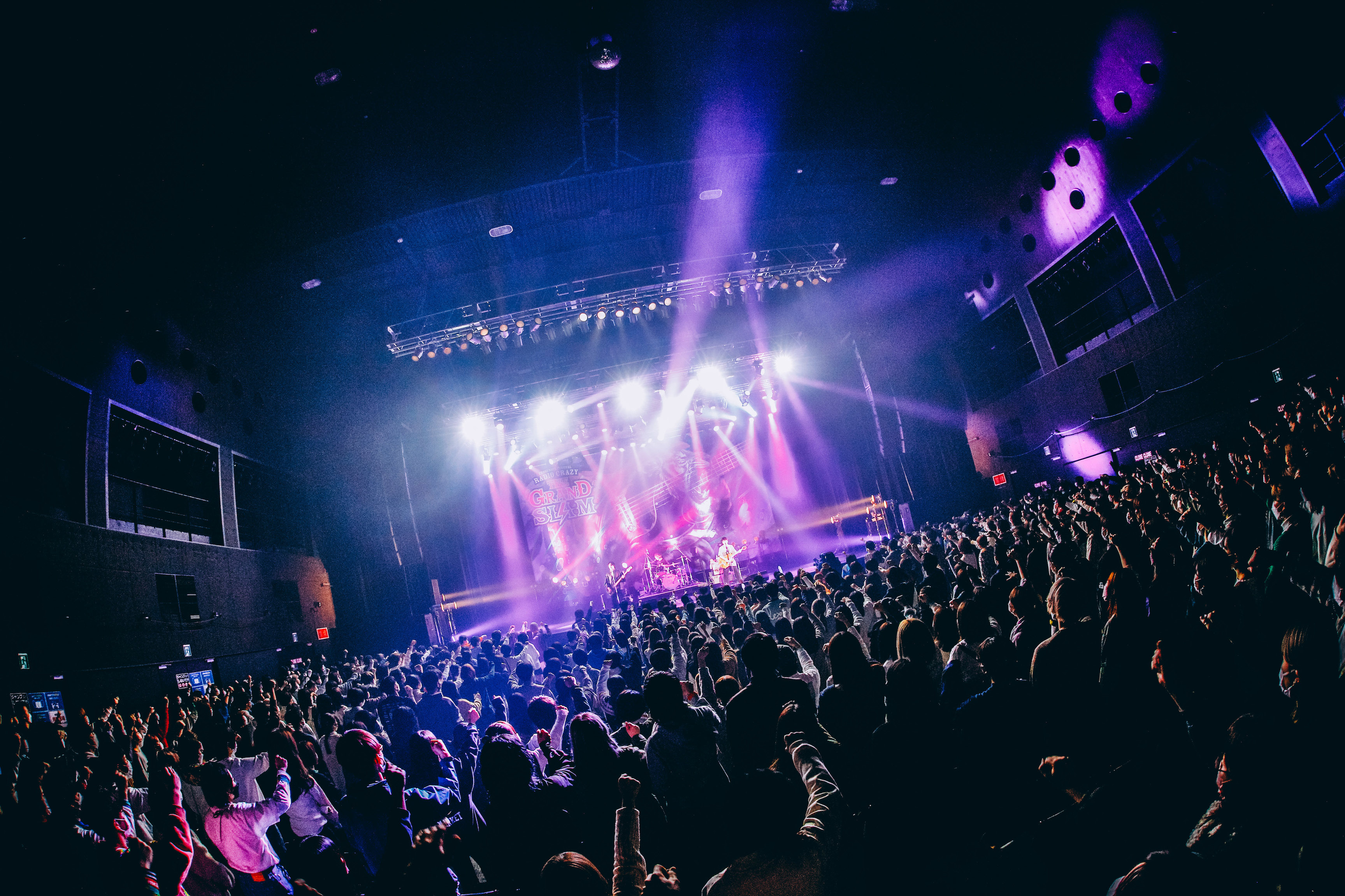 トリ前は東京からやってきた、Mr.ふぉるて。昨年12月にメジャーデビューしたばかりで、The Songbardsとはレーベルメイトの4ピースバンドだ。1曲目の「トライアングル」は、終始逆光で客席からメンバーの姿が見えない演出。稲生司(Vo.Gt)の中性的な歌声がスッと届き、演奏力の高さがサウンドから感じられる。「あけましておめでとうございまーす!!」と元気に稲生が叫ぶとステージに光がともり、メンバーの姿が確認できた。続く「なぁ、マイフレンド」では、<このコロナ禍でも僕らは無敵さ>と歌詞を変えて歌う。サビの一体感は素晴らしく、ワンマンライブのような盛り上がりを見せた。