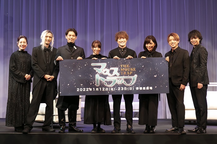 2022年1月12日(水)~23日(日)俳優座劇場にて上演される、 舞台『マウストラップ~ねずみとり』のゲネプロ・フォトセッション取材会が行われ、 椿泰我(IMPACTors/ジャニーズJr.)、 富田麻帆、 鷲尾修斗、 反橋宗一郎、 伽代子、 松田将希、 河合我聞、 釈由美子が登壇した。