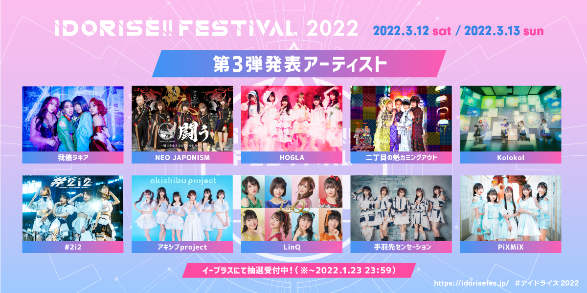 2022年3月12日(土)・13日(日)の2日間、東京・渋谷で開催される『IDORISE!! FESTIVAL 2022』の第3弾出演アーティストが発表された。