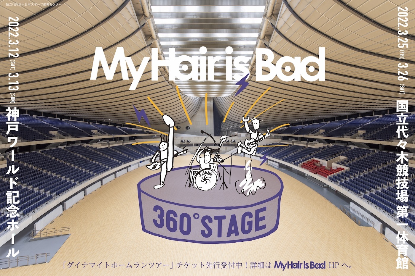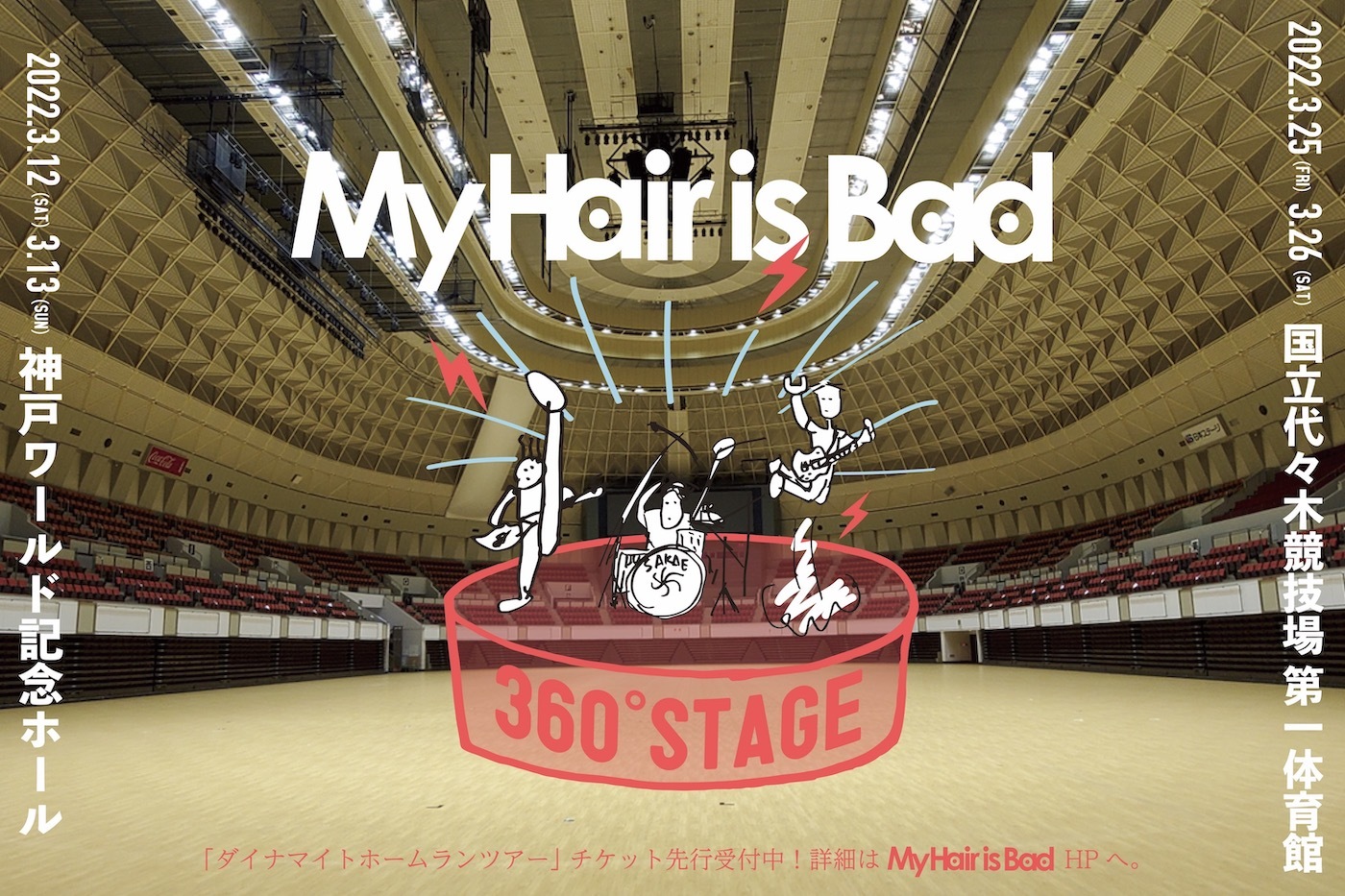 My Hair is Badが3月に東京・神戸で行う『ダイナマイトホームランツアー』アリーナ公演が、バンド史上初となる360°ステージでの開催となることが発表された。