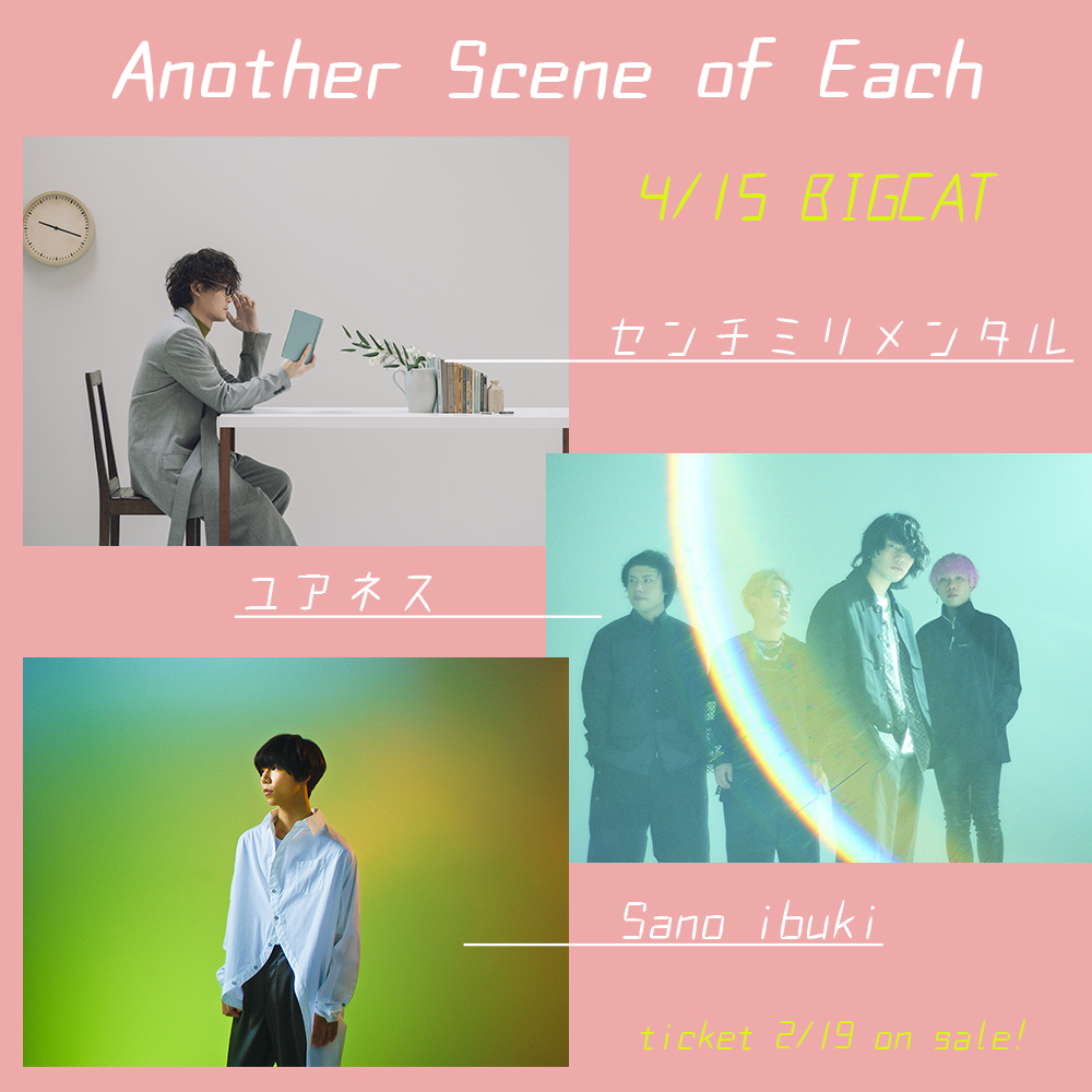 4月15日に、センチミリメンタル、ユアネス、Sano ibukiによる3マンライブ『Another Scene of Each』が開催されることが決定した。