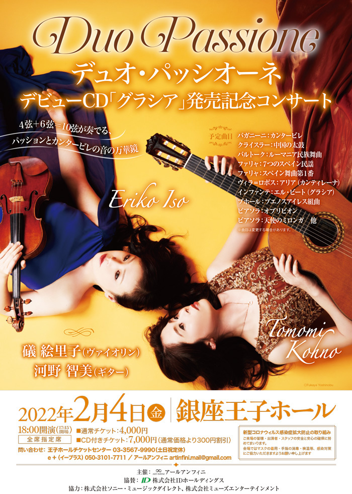 【コメント到着】Duo Passione(デュオ・パッシオーネ)/CD『グラシア』発売記念コンサート 2022/2/4(金)開催