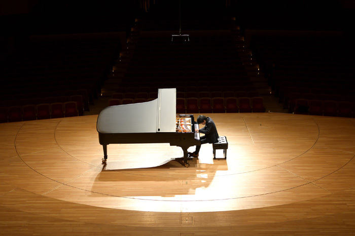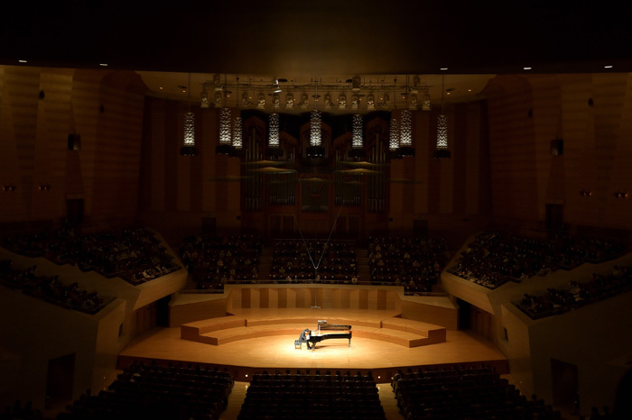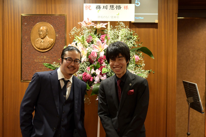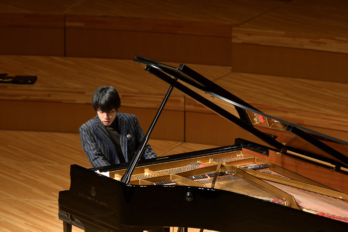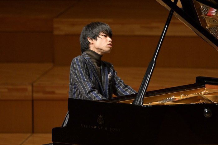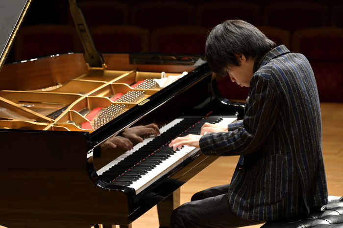 暮れも差し迫る12月18日(土)の午後、東京・赤坂のサントリーホール・大ホールは満席の客入りだ。12月らしい華やかな雰囲気とファンの期待や熱気が入り交じり、終始、会場は活気に満ちていた。客席には務川が所属する音楽事務所の社長でもあるピアニストの反田恭平もおり、盟友のサントリーホール デビューリサイタルを見守っていた。