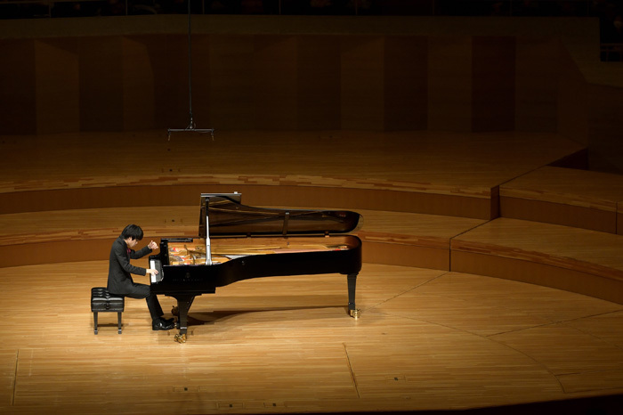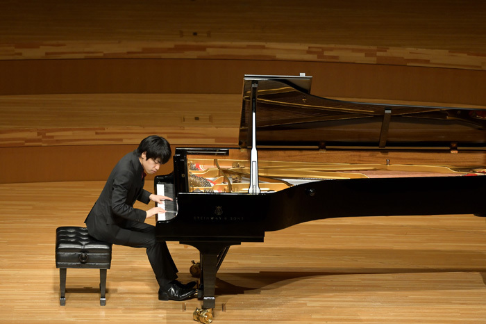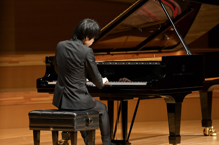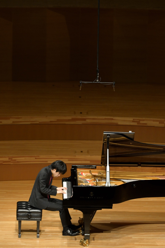 大きなうねりの中に壮大なオーケストレーションの響きを感じさせながらも、務川は一つ一つのフレーズに細やかに変化を持たせ、緻密に理知的にダイナミクスや遠近を構築してゆく。まるで務川の中に100名余のオーケストラを巧みにコントロールしている指揮者が内在しているかのようだ。終始、隙を見せることなく前進し続ける、華麗で男性的なスケルツォのカッコよさに客席は惜しみない大喝采を贈っていた。