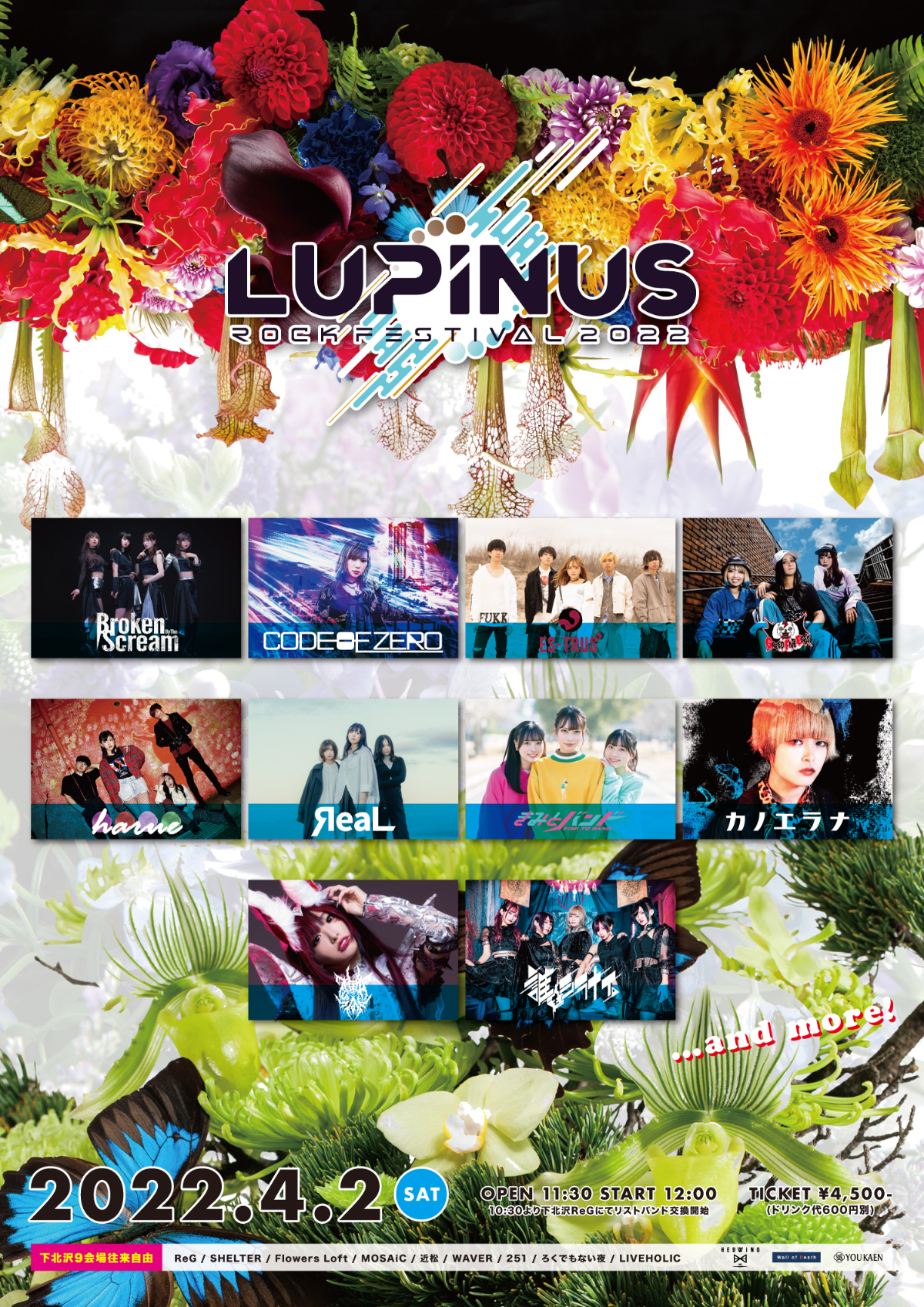 4月2日(土)に下北沢9会場のライブハウスを使用し、 女性ボーカル限定のサーキットイベント『LUPINUS ROCK FESTIVAL 2022』が開催される事が発表された。