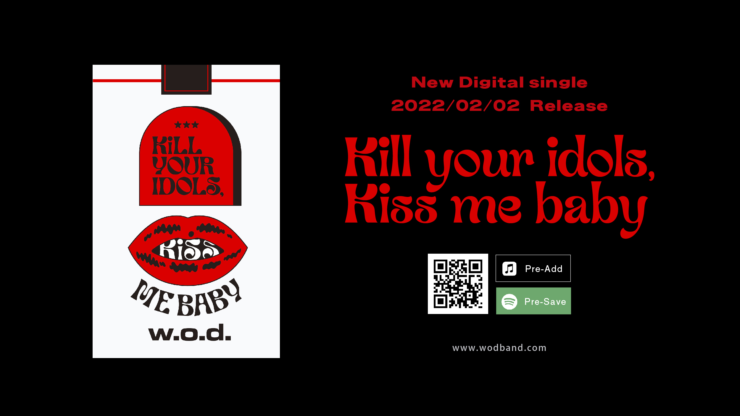 ロックバンドw.o.d.が、2022年最初のシングル「Kill your idols, Kiss me baby」を2月2日(水)0:00に配信リリースすることを発表し、ティザー映像を公開した。