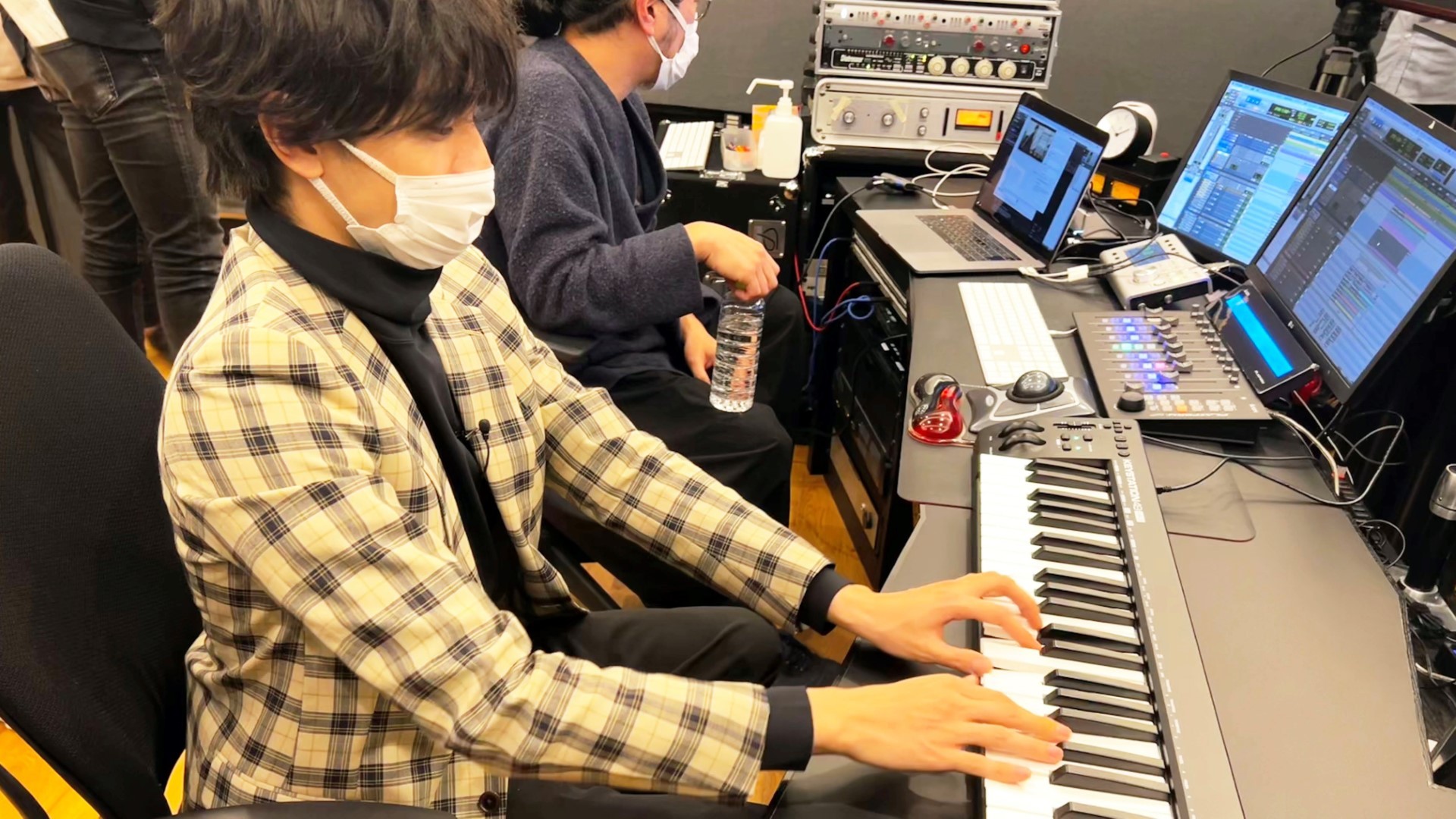 今回は数々の作品を手掛けている渡邊さんにご指導、フォローしていただきながら新しい音に出会いました。パワフルな僕の音作りにも注目してください。
