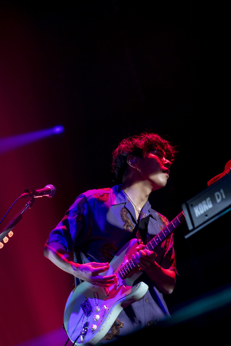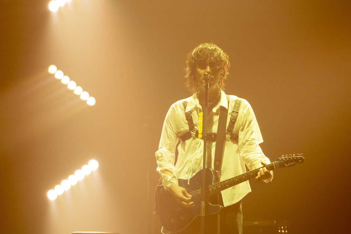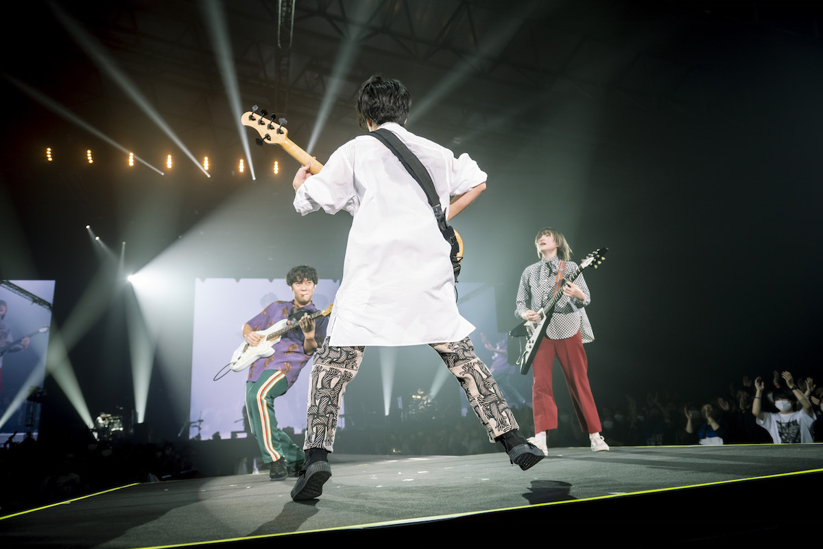 見渡す限りの観客のクラップとともに、アッパーな音の祝祭空間を描き上げてみせた「NEVER EVER ENDER」に続けて、<ロックバンドなんてもんを やっていてよかった>の野田の弾き語りから「トアルハルノヒ」へ。野田・TAIKING・沙田のトリプルギターの疾走感が、ロックの青春性そのもののように切実に胸に響いた。「ロックバンドなんてものを好きでいてくれて、ありがとうございます」と曲終わりで語りかける野田に、さらに拍手が湧き上がる。