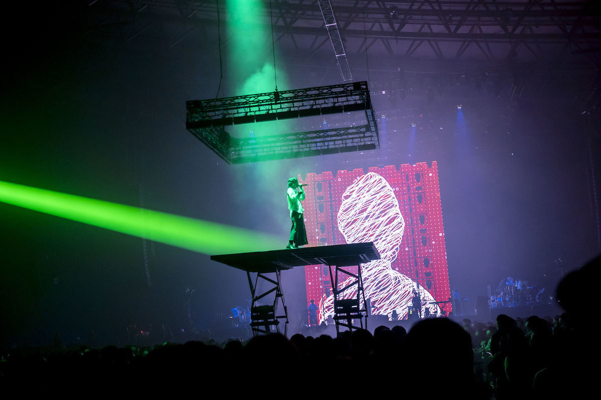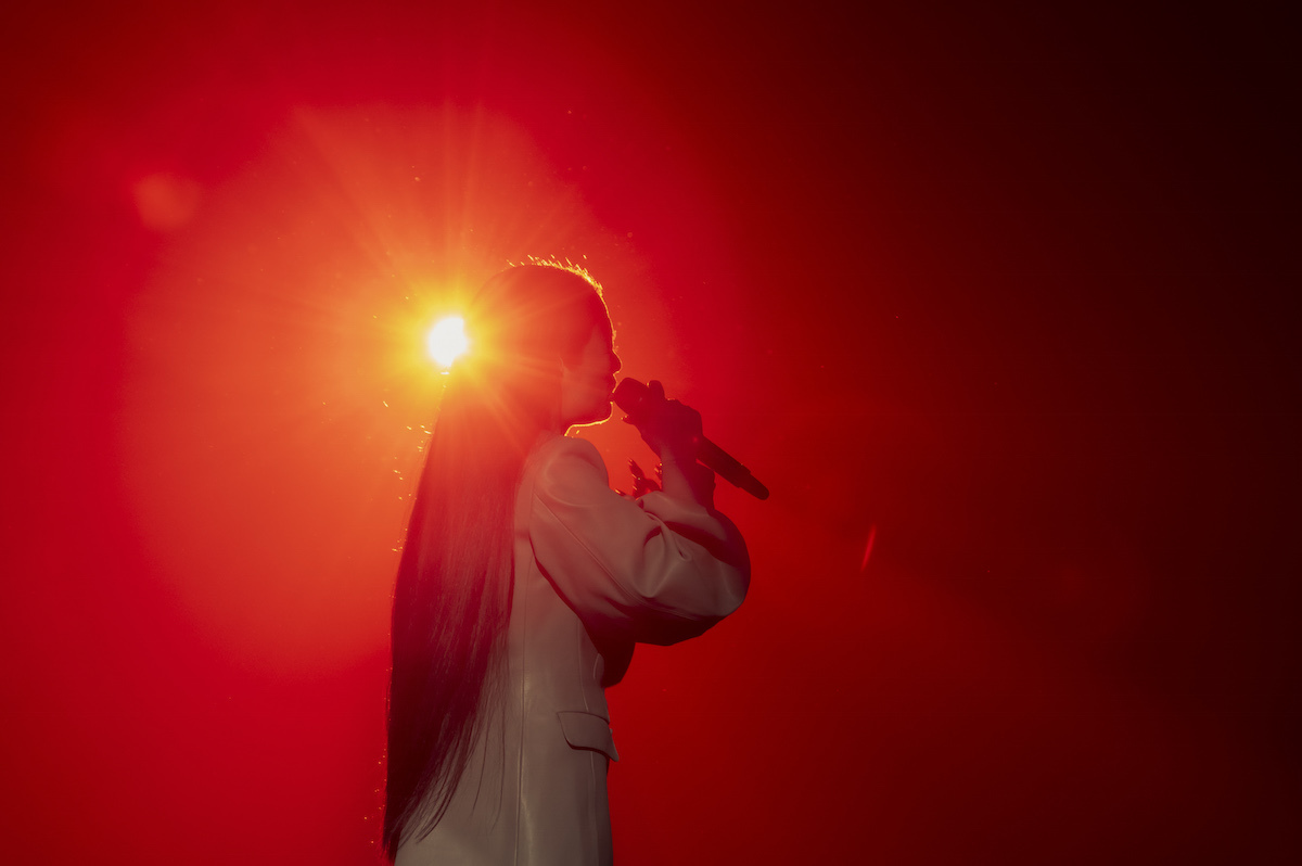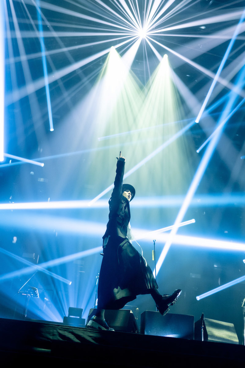 「じゃあ、いきますかい! 2022年のお前の駄々っ子っぷり、見してくれ!」という野田の叫びとともに、後半は「DADA」から「おしゃかしゃま」、さらに「セツナレンサ」と歴代狂騒ナンバー連射でジャンプとクラップの嵐! 場内はむせ返るような熱気と歓喜に満たされていく。そこから「匿名希望」で冷徹なラップを繰り出しながら花道をセンターステージへと歩むと、センターステージが空中高くリフトアップされる。眩しいレーザー光線が檻のように野田を囲み、客席は一気に不穏な緊迫感に支配される。喜怒哀楽も葛藤も批評精神も問題意識も、生きる上でのすべてを音楽に注ぎ込み続ける野田の在り方が、そんなスリリングなライブ展開からも浮かび上がってくるように思えた。