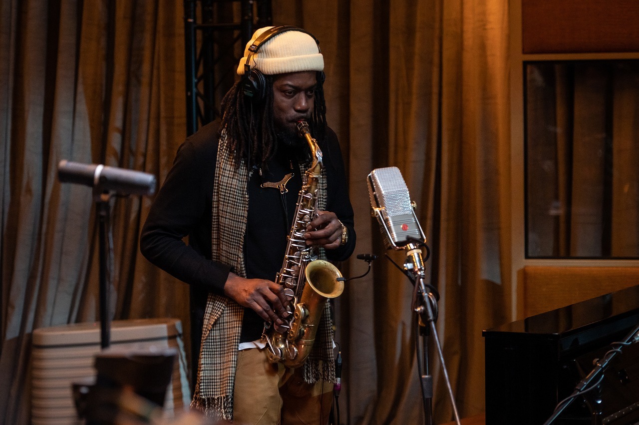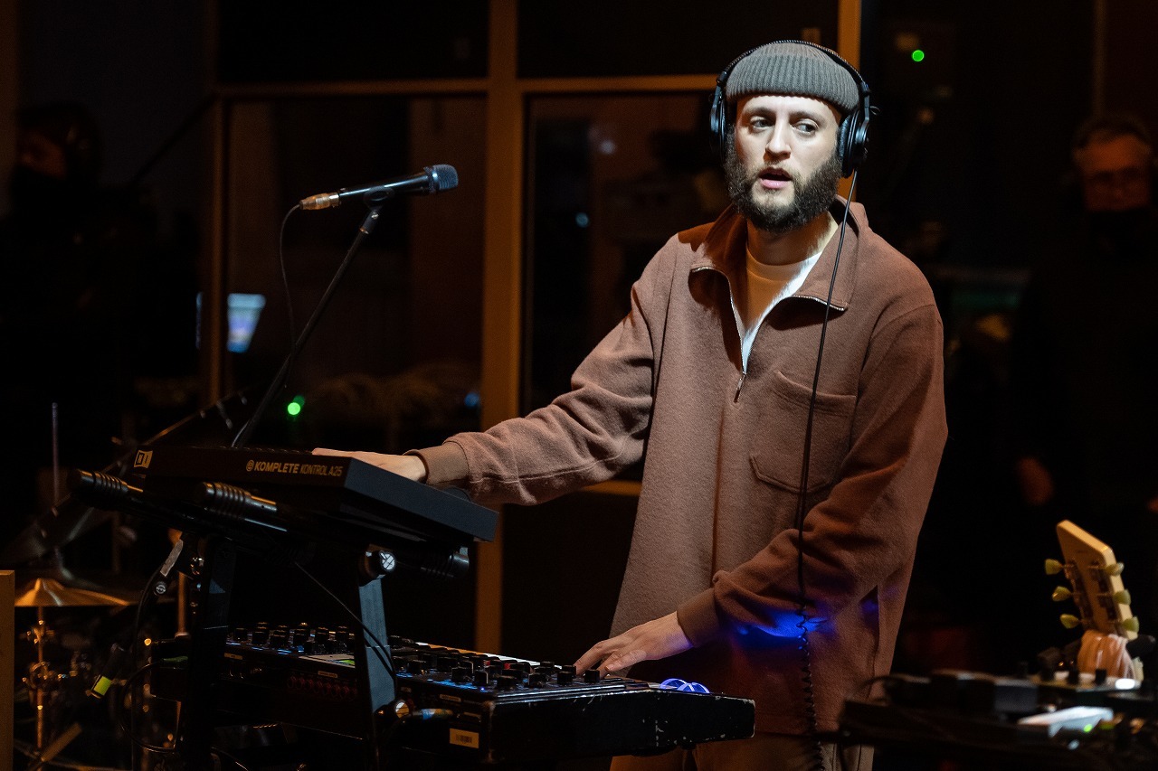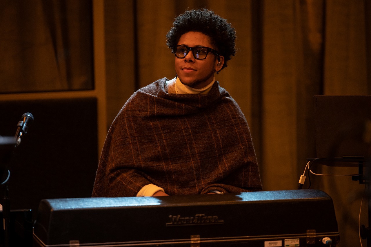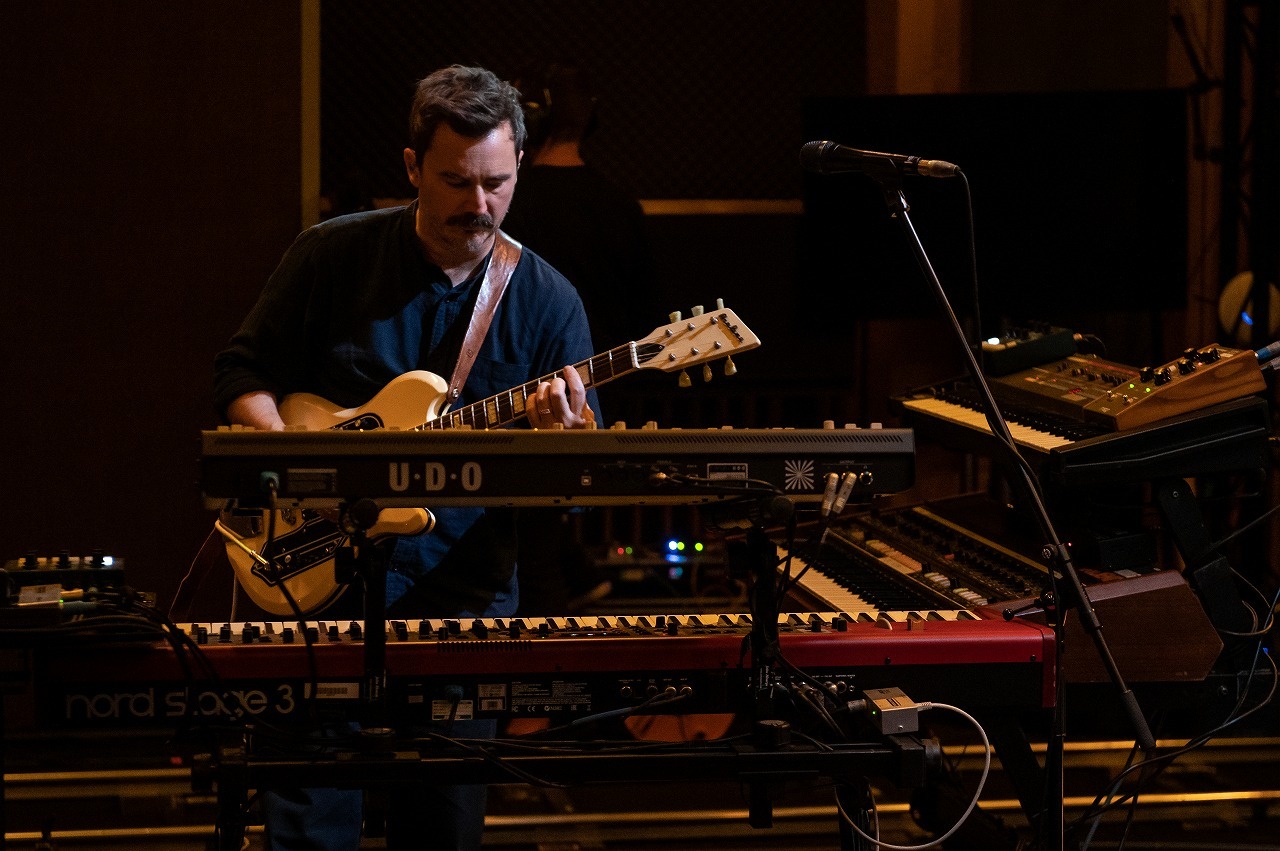 バンマスのベーシスト、ジョディ・ミリナー(Jodi Milliner)をはじめとする7名のサポートミュージシャンらと共に、宇多田がスタジオに足を踏み入れるシーンからライブははじまった。白いシャツに黒いパンツというカジュアルな服装。マイクの前に立った宇多田はぐっと体を伸ばし、肩をまわした。「キー、キー、キー」と少しおどけるように発声をすると、スタジオに笑顔がこぼれた。1曲目はアルバムのオープニングトラック「BADモード」。トライバルなビートと柔らかなシンセのフレーズ、渋いサックスの調べにのせて、宇多田の儚くも透明感のあるボーカルが軽やかに転がった。《絶好調でもBADモードでも/君に会いたい》。アルバムの核心とも言えるフレーズが心地よく伝わってくる。シンセの音色がリズム楽器のように緻密に重なり合い、極上のグルーヴを聴かせた映画『シン・エヴァンゲリオン劇場版』テーマソング「One Last Kiss」、切ないピアノのイントロを皮切りに低音域から高音域へとレンジの広い歌唱を聴かせるドラマ『最愛』の主題歌「君に夢中」へ。時々目を閉じ、演奏に身を委ねるようにして、宇多田はゆるやかに体を揺らしながらメロディを紡いでいく。