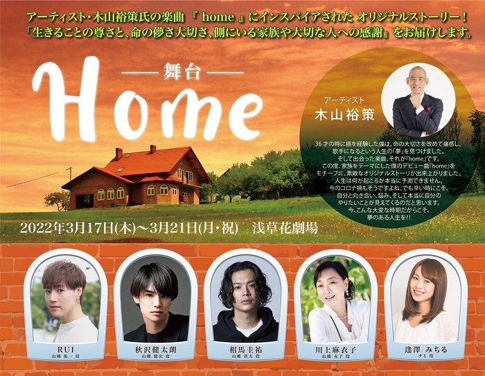 2022年3月17日(木)〜3月21日(祝・月)浅草花劇場にて、舞台『Home』が上演されることが決定した。