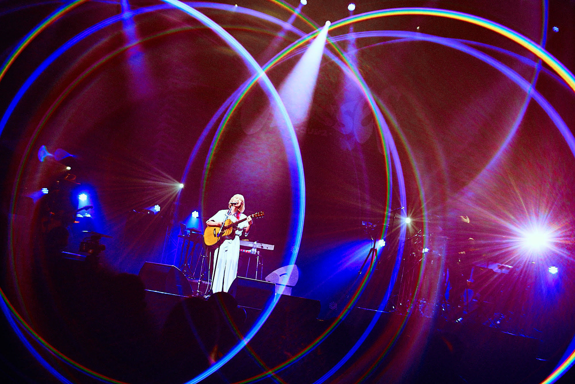 「皆さん、こんばんは。竹内アンナです。」と挨拶をすると、1曲目はデビュー曲「ARLIGHT」で会場の雰囲気を一気に竹内アンナムードへと包み込み、そのまま「SUNKISSed GIRL」、「Now For Ever (with AFRO PARKER)」、「TOKYO NITE」と序盤から怒涛に歌い上げる。その圧倒的なギターテクニックと甘い、そして柔らかな歌声に発声ができないオーディエンスは精一杯の拍手で応えていた。