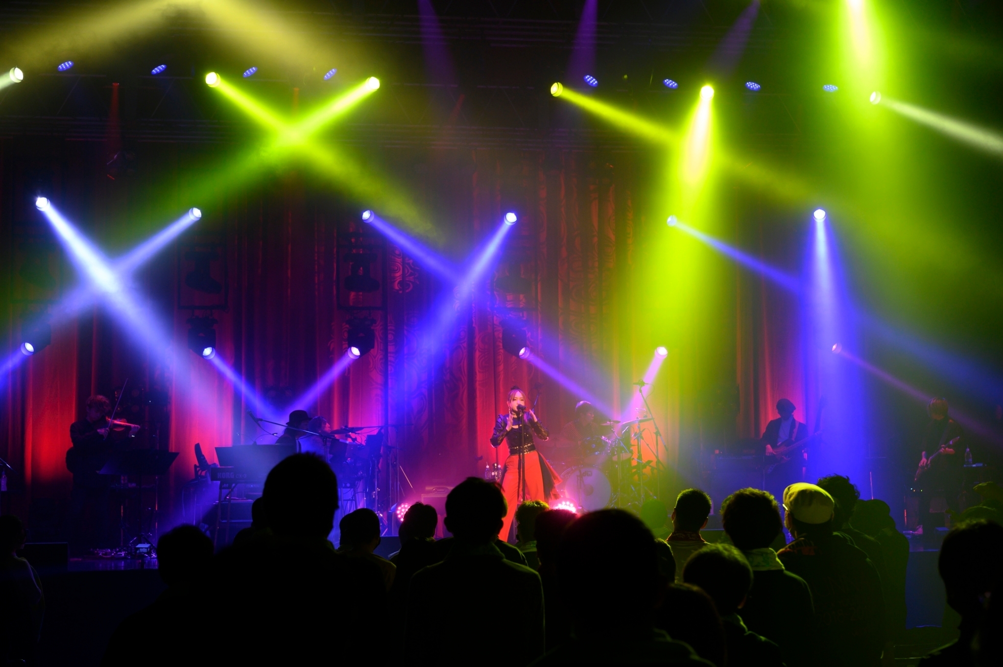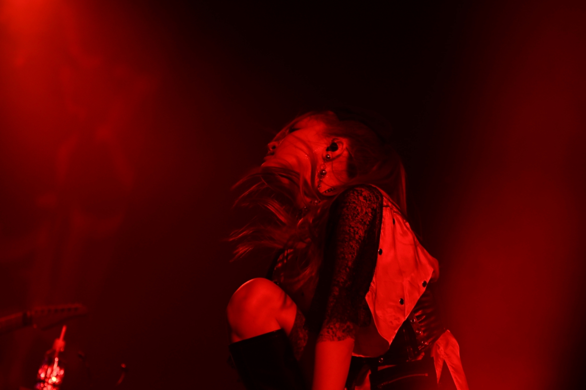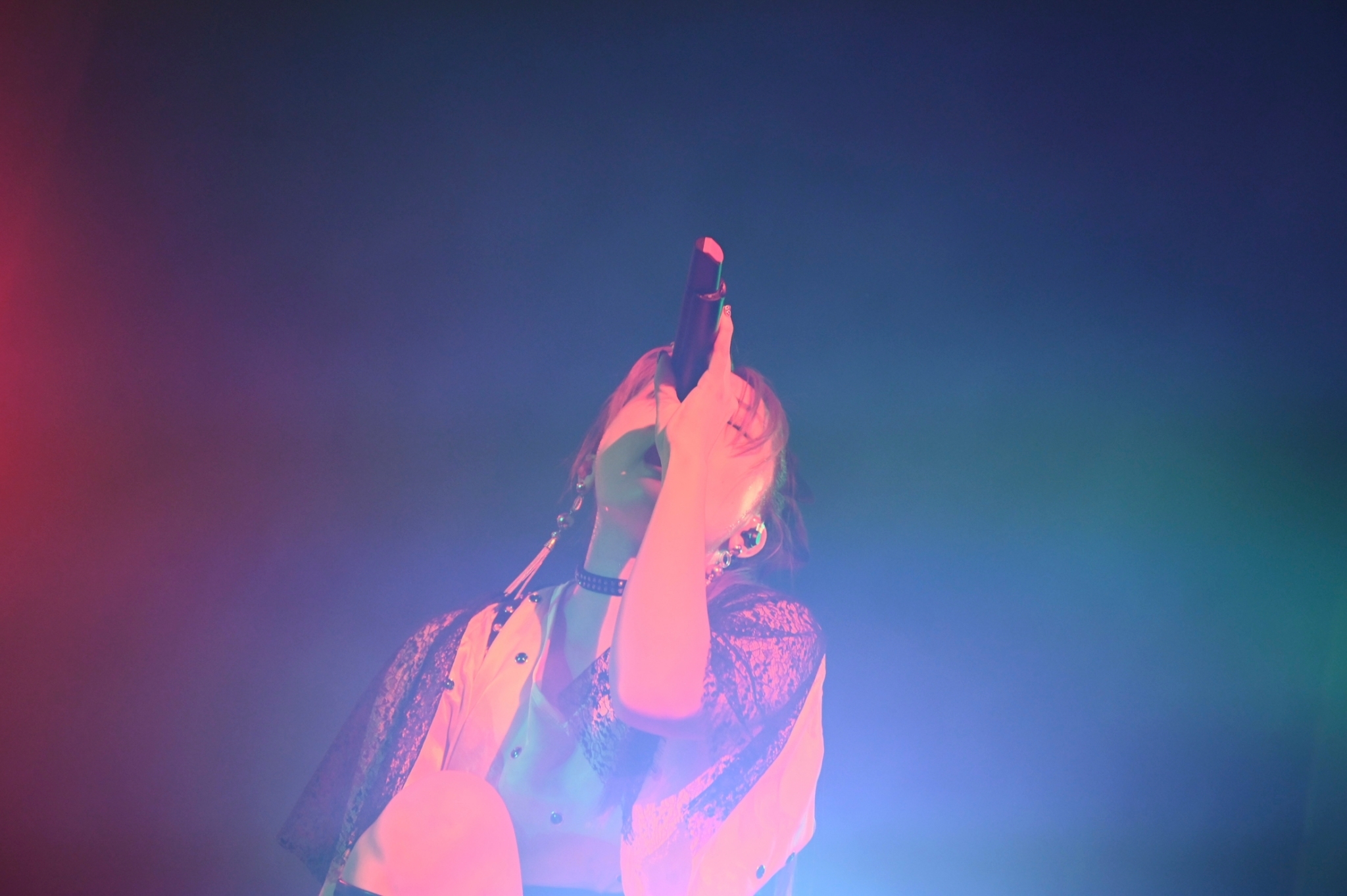 続く「我は小説よりも奇なり」で最終日のシャウトを豪快に決めたら、更に「紅く、絶望の花。」ではカオティックな盛り上がりとなったが、その熱気は本編ラストであり、このツアーのタイトル曲でもある「風の音さえ聞こえない」で爆発した。凄まじい熱気を帯びたバンドの演奏と、ステージを縦横無尽に動き回るJUNNAのパワフルな熱唱、レーザー光線が飛び交う中、驚異的とも呼べる圧巻のステージが繰り広げられた。「風の音さえ聞こえない」はサウンドもヘヴィだし歌詞の世界観もハードな瞬間風速で駆け抜けるような強さを帯びているので、ある程度、ライブでも激しいパフォーマンスになるだろうと予想はしていたが、目の前のJUNNAはそんな予定調和などぶっ壊すようなとんでもないエネルギーをこの曲で放っていたのである。JUNNAは今、JUNNA自身が描いた理想像を自ら超えて行っているのだろうと思った。それほどまでにライブでしか感じることができない音楽のパワーを見せてもらった本編ラストだった。