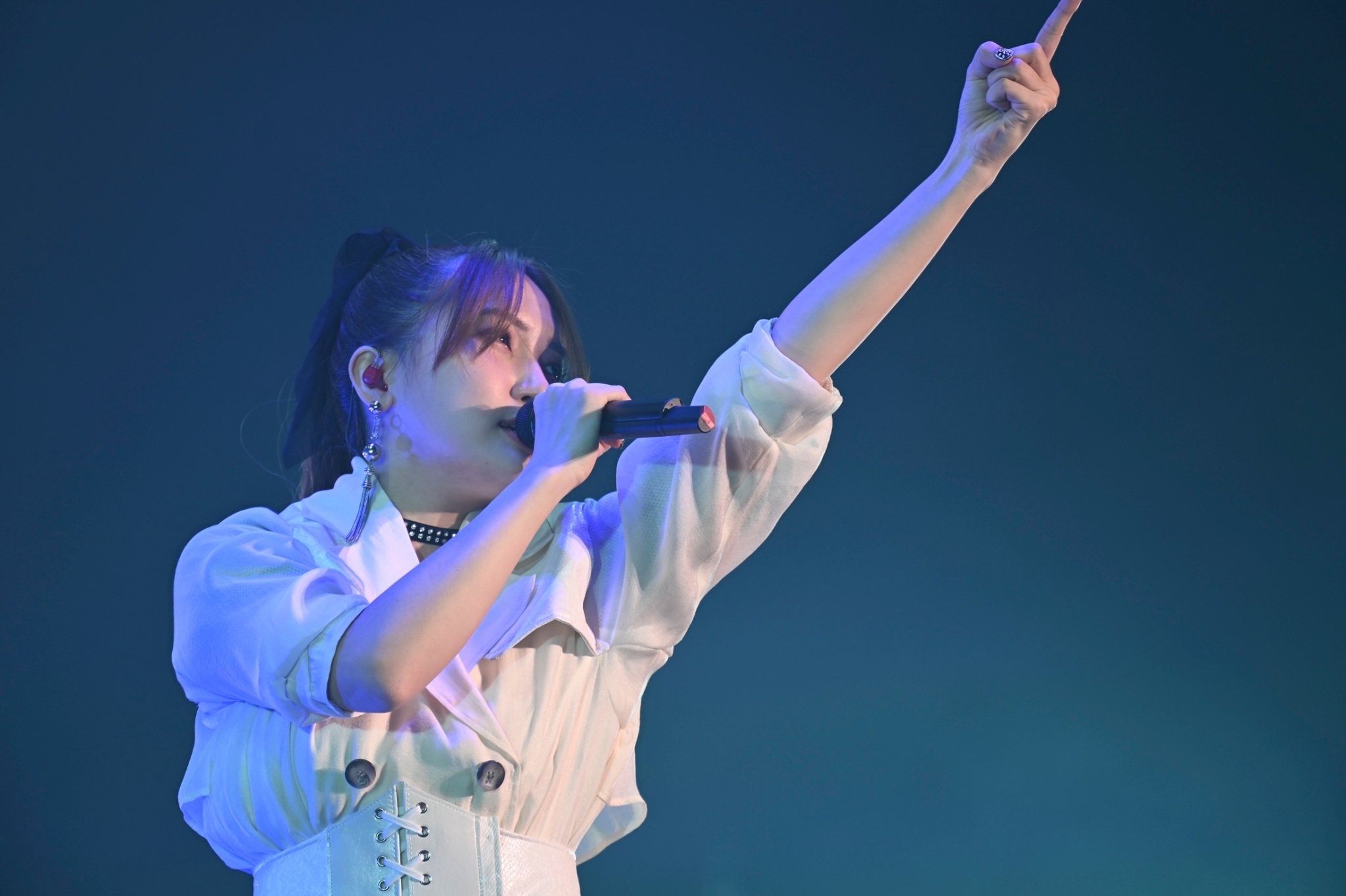 そして2月16日にリリースされる6枚目のシングル「風の音さえ聞こえない」のカップリング曲「僕のむこう」を初披露。この曲は「聴いてくれたみんなが同じ景色を思い浮かべられるような曲にしたい」と自ら作詞したもの。「何かに挑戦すると失敗もあるかもしれないけど、それでも何か得られるんじゃないかと思って」というメッセージが込められているそうだが、それこそが今のJUNNAの進化につながっているんだなと思う。例えばライブのオープニングで一人きりで歌い始めることも、そんな勇気がなければできなかっただろう。やがて真っ白な衣装に着替えて「海と真珠」を披露すると「ここからはロックな曲しか歌わないよ!みなさん後半戦まだまだ行けますか!」とオーディエンスに呼びかけた。