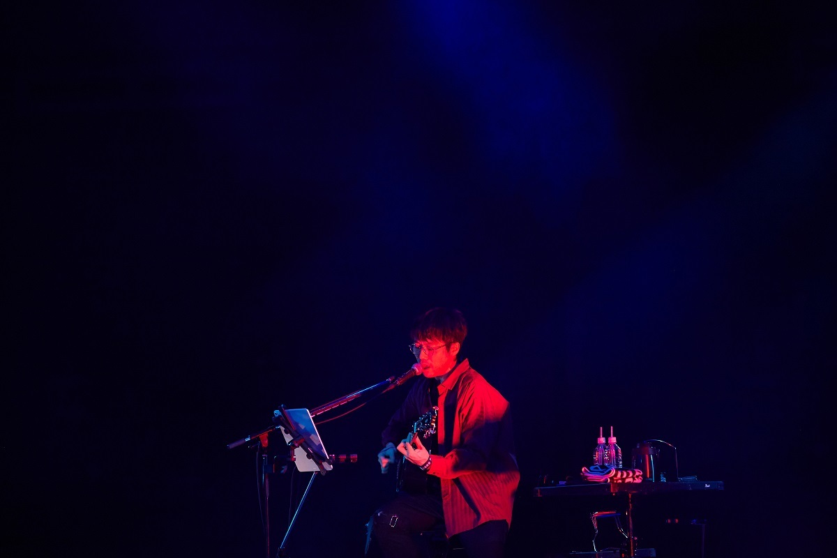終盤は、弾き語りのイメージを逸脱する音の厚みと熱量で、「みんなそろそろお尻が痛いんじゃないですか?」と観客に立ち上がるよう促し、ビート+2つのフレーズで作る「(Where's)THE SILENT MAJORITY?」、息苦しいほどリアルな言葉が連射される「象」。そして、高橋が高橋であるゆえんを感じる「ルポルタージュ」で、《君がいる限りこの世界は素晴らしい》と歌い、誰も傍観者になれない空間を作り上げる。