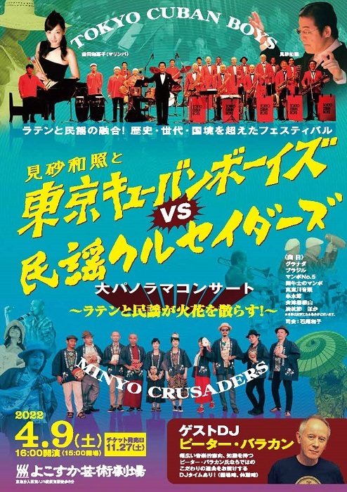 2022年4月9日(土)よこすか芸術劇場 にて『見砂和照と東京キューバンボーイズ VS 民謡クルセイダーズ 大パノラマ コンサート』が開催される。