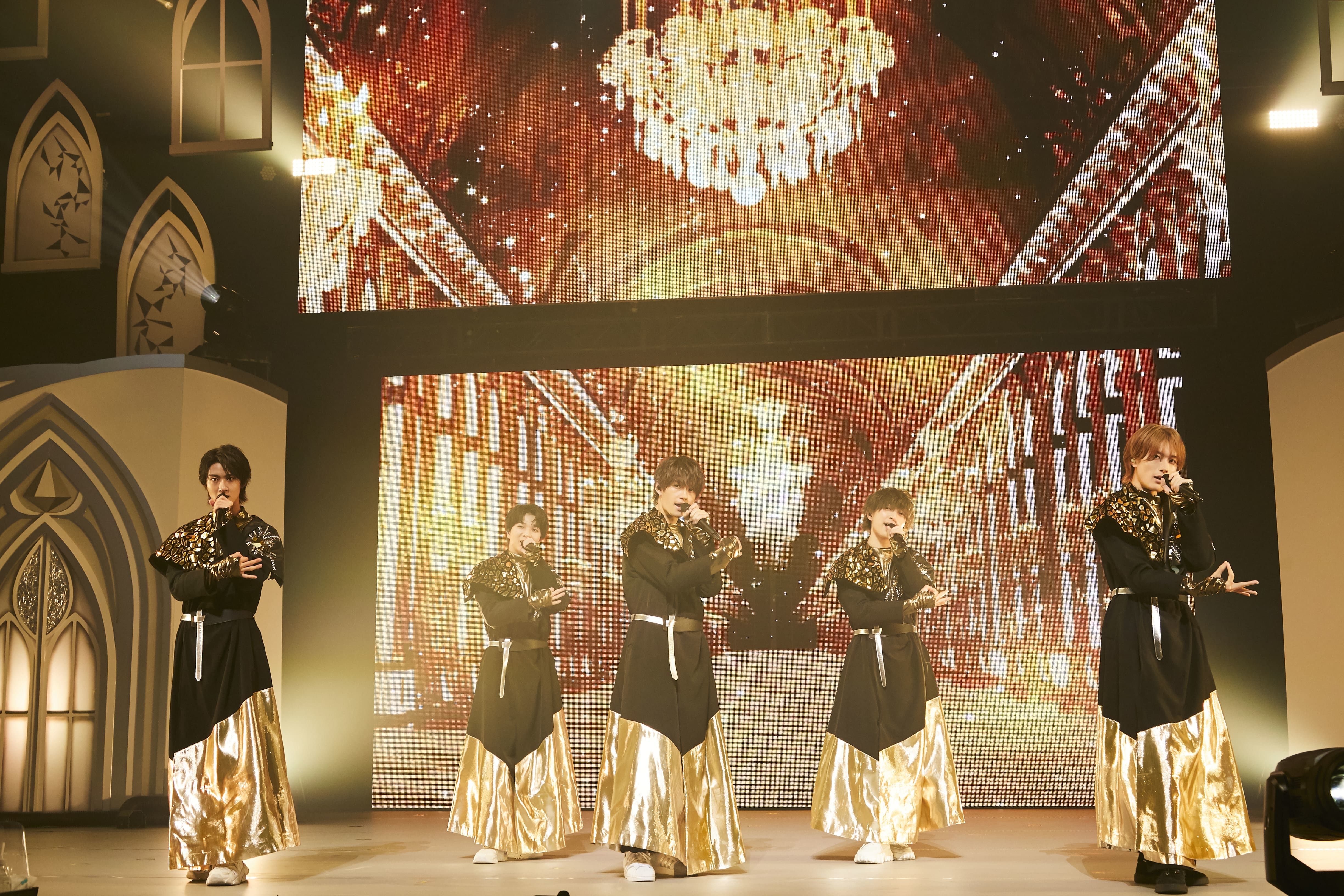 ライブは、メンバーが光をあてて虹を描くプリズムを手にした映像からスタートした。続いて、司祭のような金色のローブガウンを身に纏ったメンバーが教会を思わせるステージに登場。光が降り注ぐ巨大なLEDスクリーンに囲まれる中で、ファンとの絆を結んだメジャーデビュー曲「Ribbon」を煌びやかに歌唱し、場内を一瞬にして<光あふれる場所>へと変えた。そして、佐野による「いくぜ! パシフィコ!!」という叫びを合図に、トランシーなロックナンバー「上昇クライマー」では、メンバーと観客が一斉に拳を挙げて熱狂。さらに、塩﨑が「今日はバカになって騒ぎましょう」と呼びかけ、お茶目でユニークな「めちゃモル」や「サンキュー! N・D・K!」ではステージ上を所せましと走り回って大騒ぎ。爽やかなシャツへの早着替えを経て、「男子スイーツ部発足します」は可愛くキュートにパフォーマンスし、山中のウィンクが決まった「恋がはじまる」ではピュアなラブストーリーを届けた。