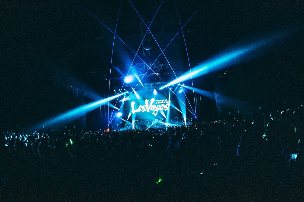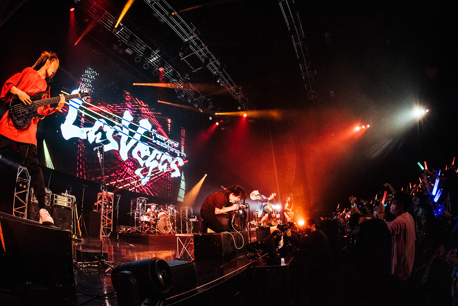 そんなタイミングで今度は「オレらラスベガスの事知ってたって人、どれくらいいますか?ライブも来た事あるよって人は?」とフロアに問いかけ「うわ!めっちゃおるやん嬉しいです。まぁ、ラスベガス知らん! RASしか勝たん! って人も最近1曲だけ楽曲提供させて頂いたので……」と本公演のタイトルにもなっているRASの新曲「Repaint」についても軽く触れた所で「皆、まだまだ踊れますか?サイリウムの準備出来てますか!? …よし、それじゃこんな曲行きます!」と「Lay-Line」「Shape of Trust」「Crossover」とダンサブルなチューンを紡いでいく。