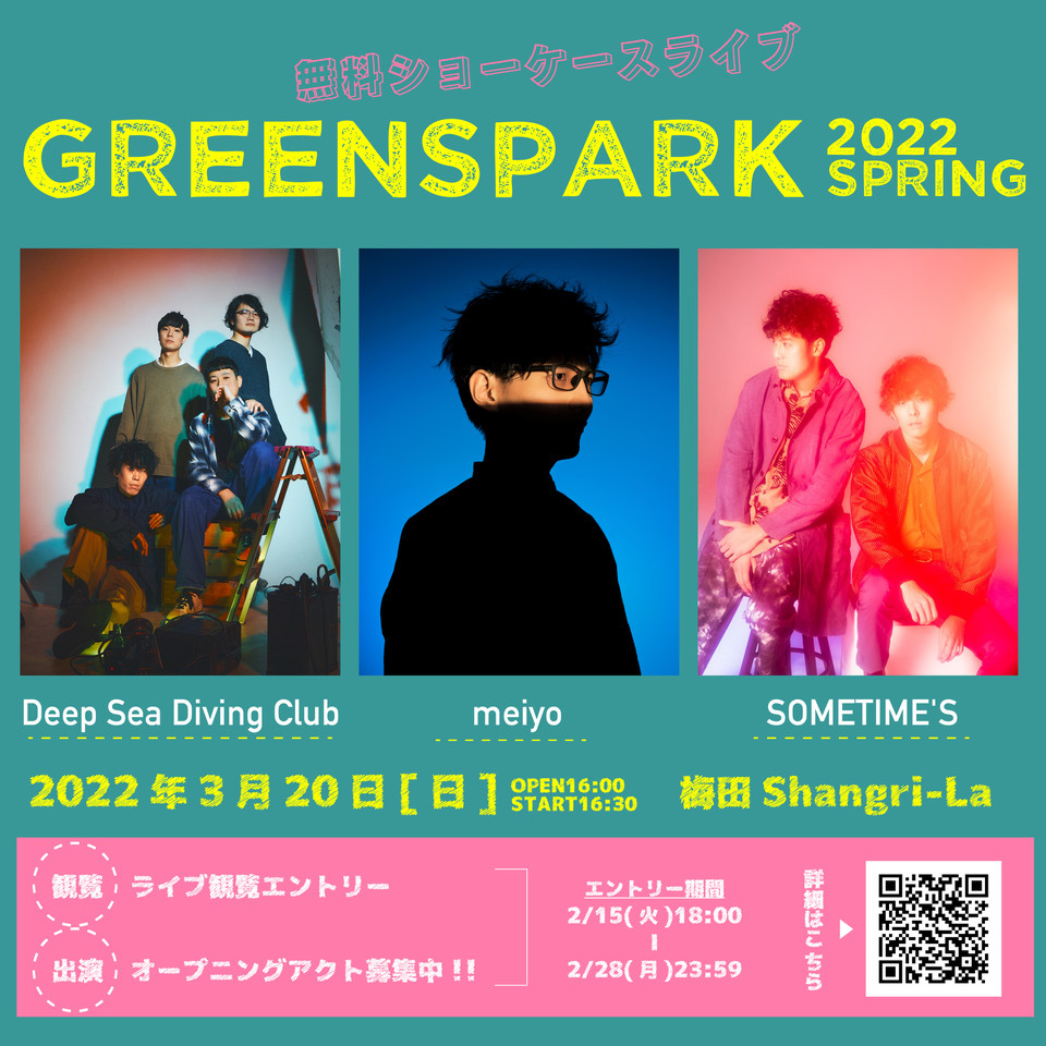 関西のコンサートプロモーター GREENSが主催するライブイベント『GREENSPARK(グリーンスパーク)』が開催決定。久々の開催となる今回は無料ショーケースライブとなる。