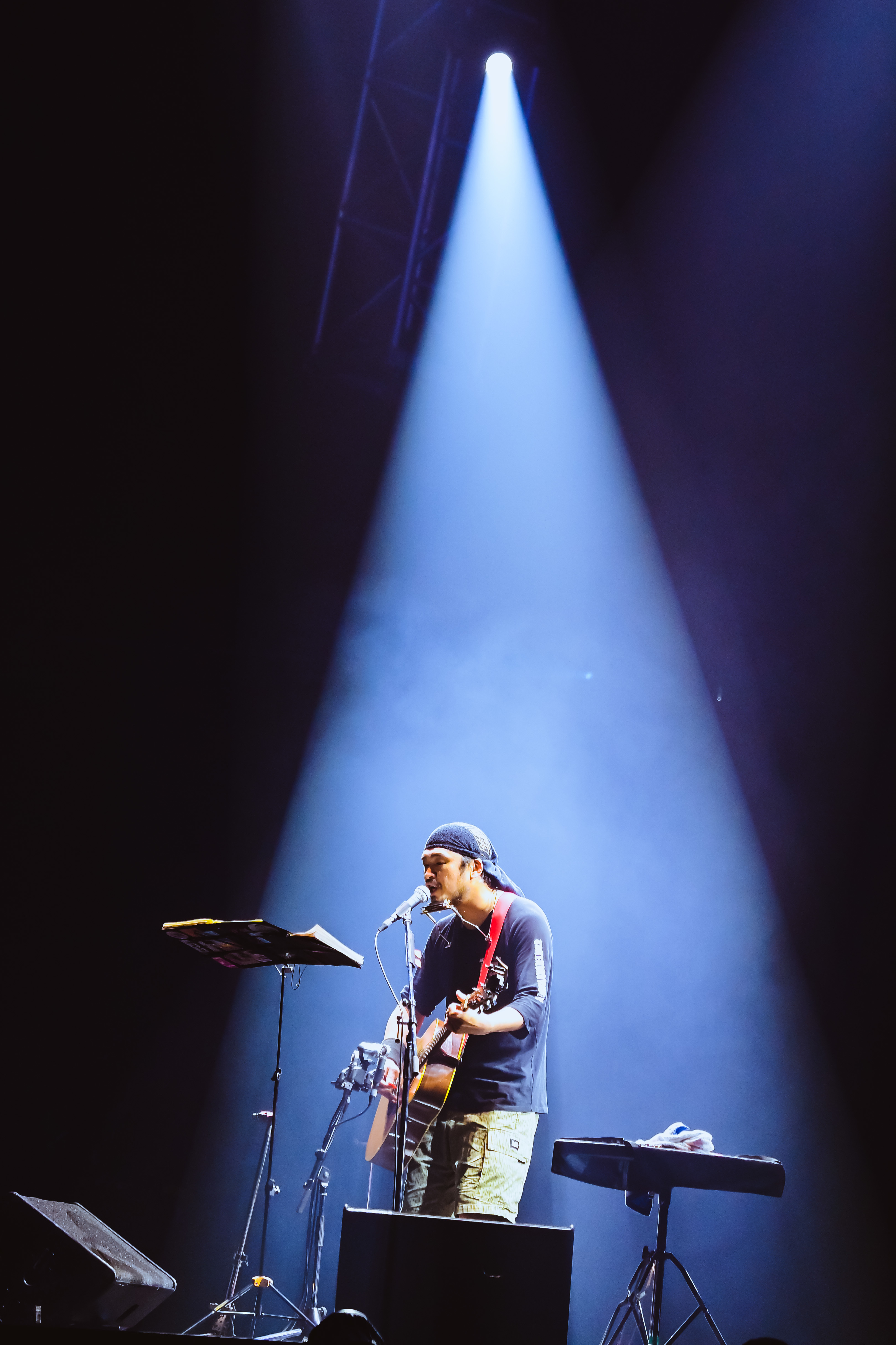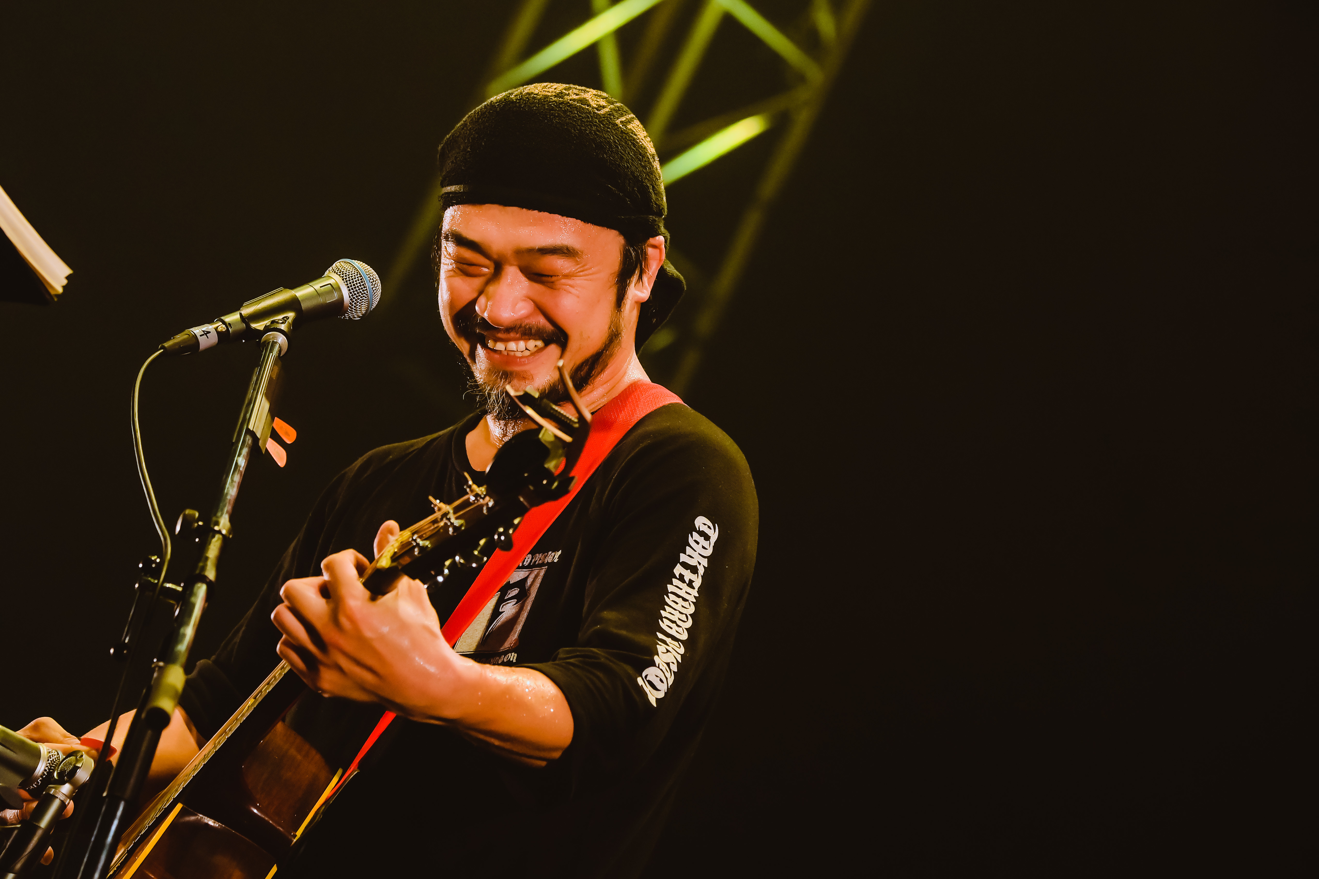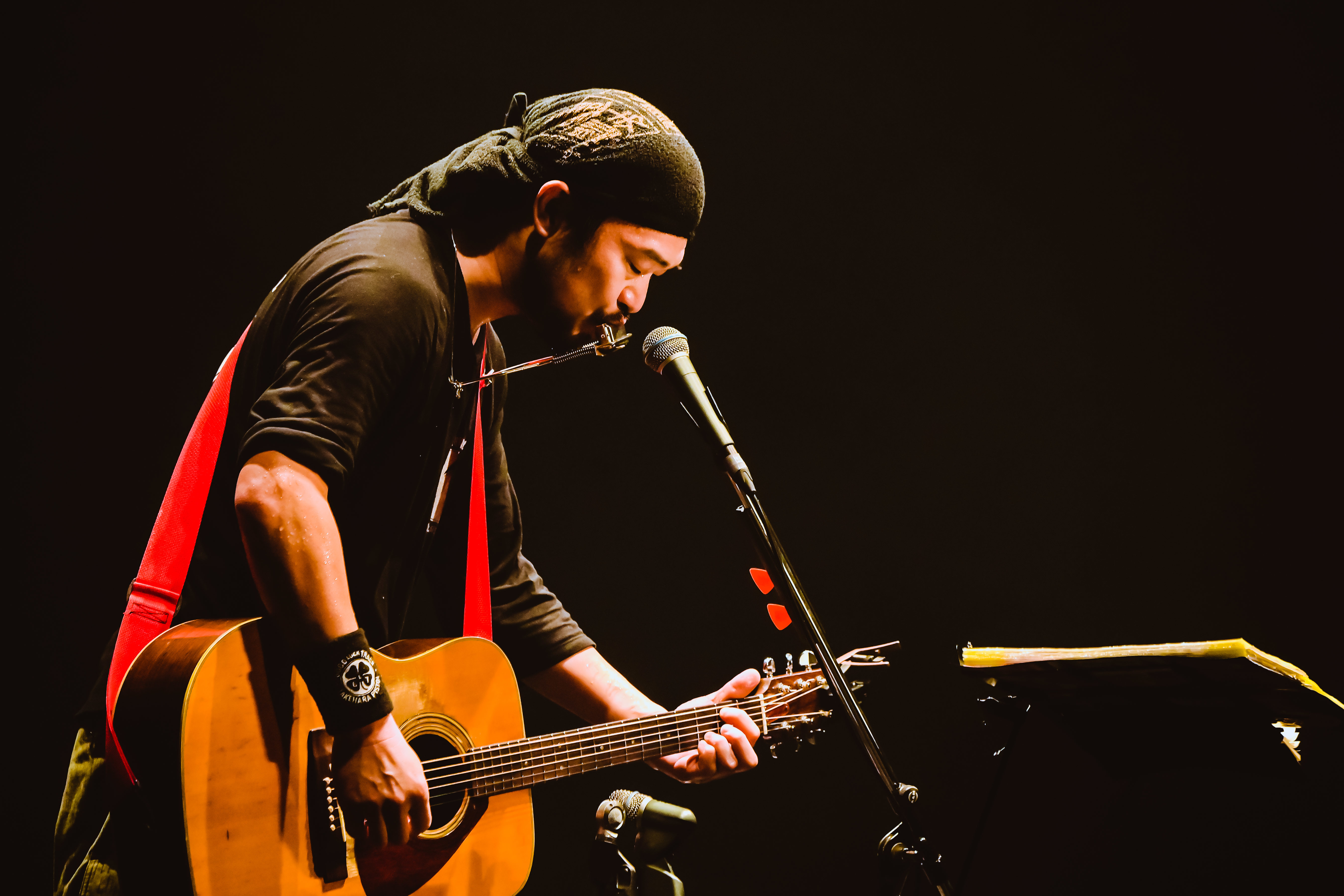 続く「Amazing Grace」がまた出色だった。「愛する存在に対しての祈りの気持ちを込めて書いたポエムを、「アメイジング・グレイス」のメロディに乗せさせていただいて完成させた曲です。今日お集まりの皆さん、今年も心と体に気を付けて元気に過ごされますように」と、切実な願いを凝縮した今宵イチの絶唱に、涙腺は容赦なく決壊。情感たっぷりのブルースハープがまた味わい深く、彼の私小説の世界に入り込んだような心地だ。