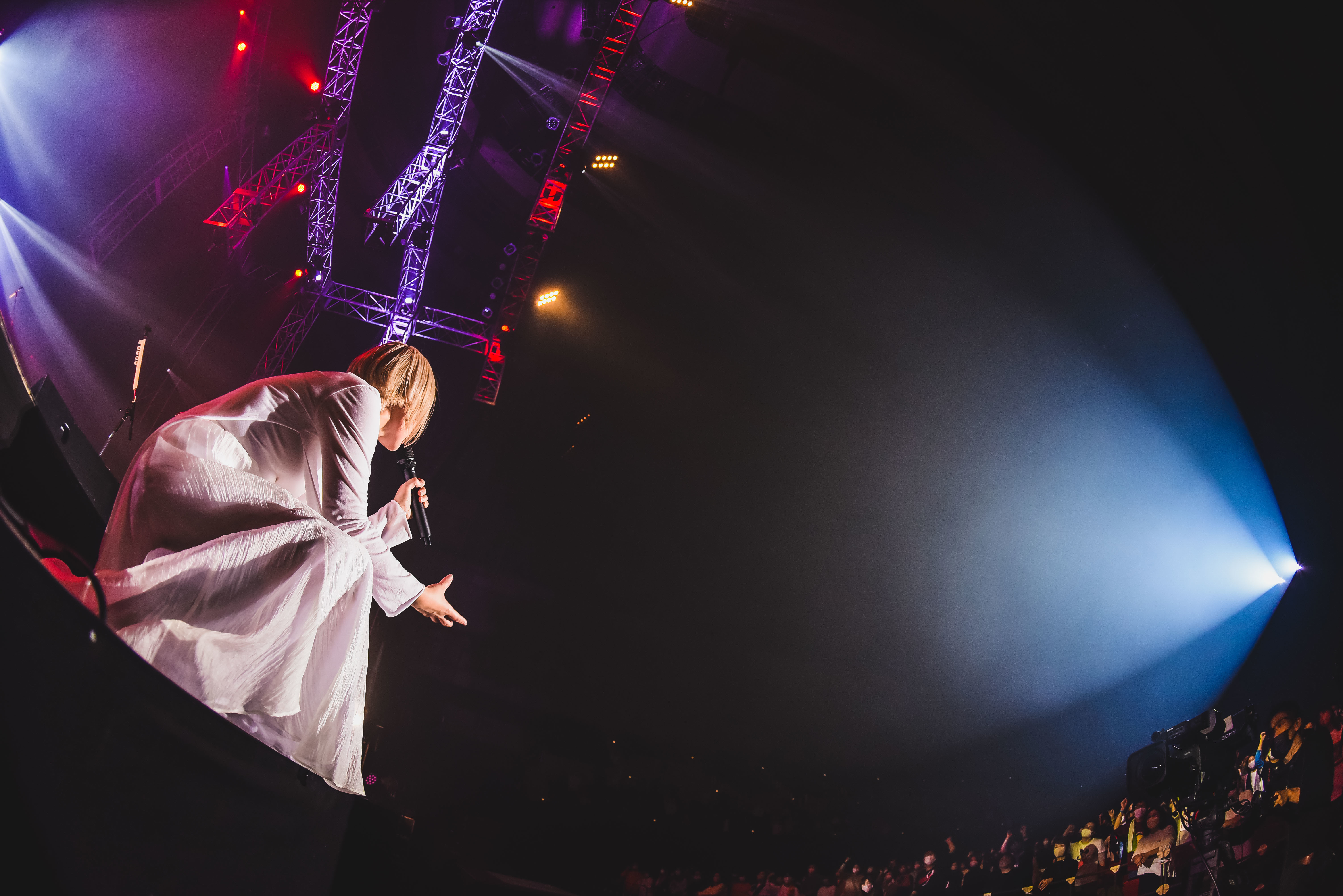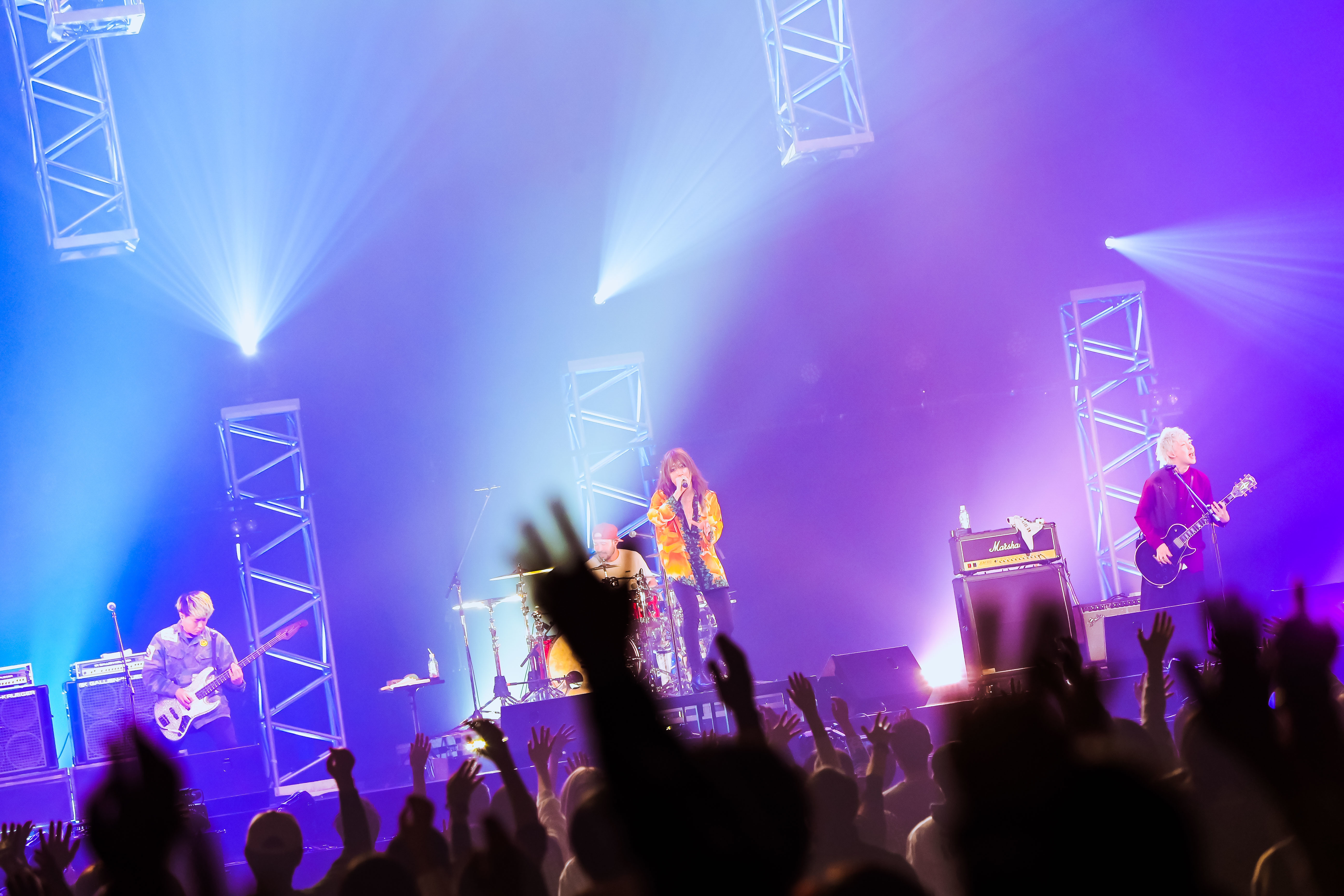 その号令のもと、会場が特大のクラップを生み出し、「美しい日」へとなだれ込む! 瞬間瞬間に全霊を賭けた4人の振り切ったパフォーマンスは、一期一会の奇跡を身に染みて理解しているからだろう。そのさまに共鳴したように客席も拳を握り、高いジャンプを重ねていく光景に、「しっかり受け取りました!」と、渋谷も何ともうれしそうだ。新たなアンセム「名前を呼ぶよ」、さらに「嬉しい涙」では、まるでコロナなんてなかった時代と同じように、渋谷はフロアへとマイクを向ける。「歌えないけど」と前置きし、でも無声のレスポンスは熱気となって4人へと伝播していく幸福な連鎖だ。