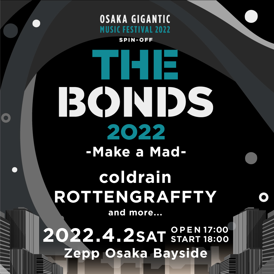 『OSAKA GIGANTIC MUSIC FESTIVAL2022』(通称:ジャイガ)のスピンオフイベントとして、4月2日(土)Zepp Osaka Baysideにて『THE BONDS』が開催されることが決定した。