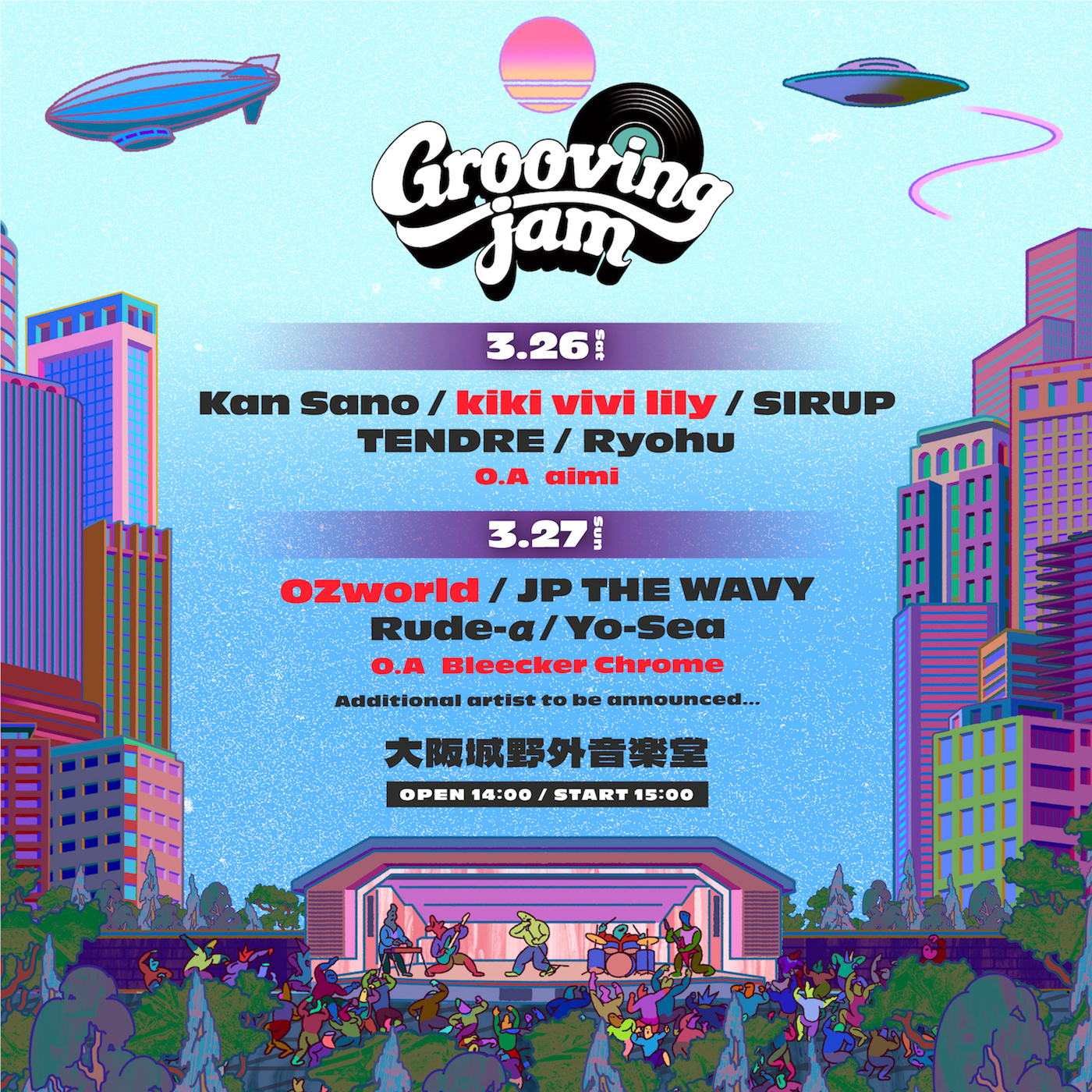 3月26日(土)・27日(日)に大阪城野外音楽堂にて開催される新野外音楽フェスティバル『Grooving jam』。新たに第3弾としてO.Aを含め4組の出演者が追加発表された。