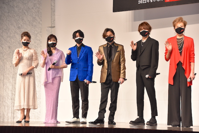 綺咲愛里、島田歌穂、北山宏光、堂本光一、佐藤勝利、前田美波里(左から)