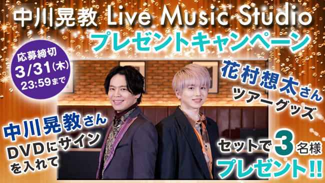 なお、放送終了後、専用の応募フォームに番組への感想などを記入すると、花村想太ツアーグッズ&中川晃教DVD(サイン入り)がセットであたるプレゼントキャンペーンを実施(抽選/3名様)。詳細はサイトにて確認してほしい。