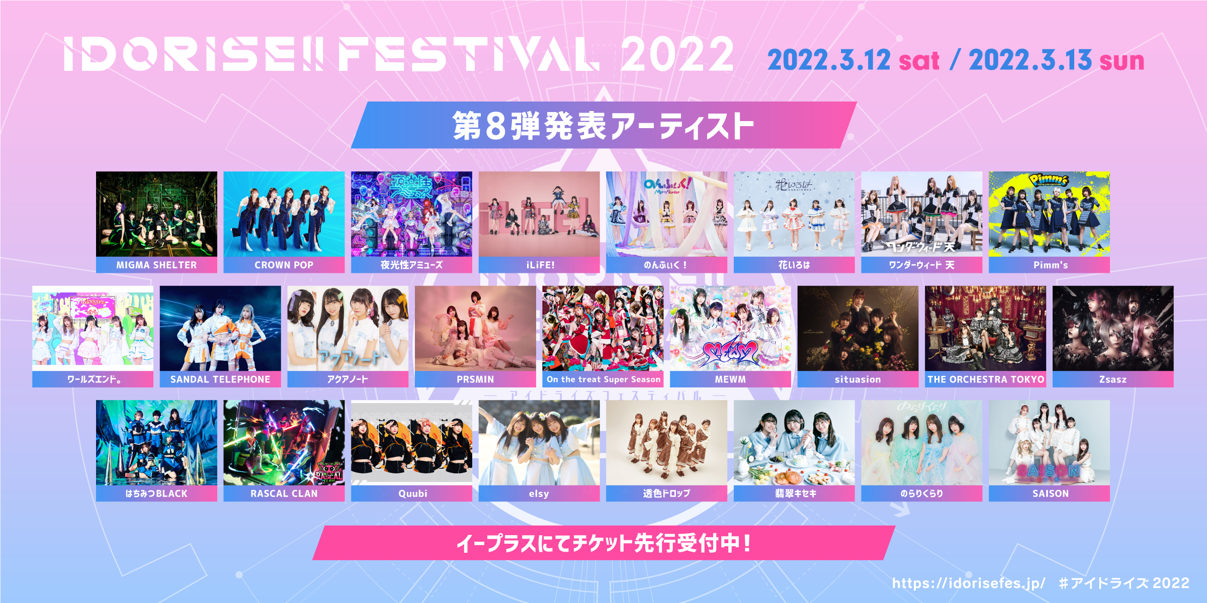 2022年3月12日(土)、13日(日)の2日間、東京・渋谷で開催される『IDORISE!! FESTIVAL 2022』の第8弾出演アーティストが発表された。