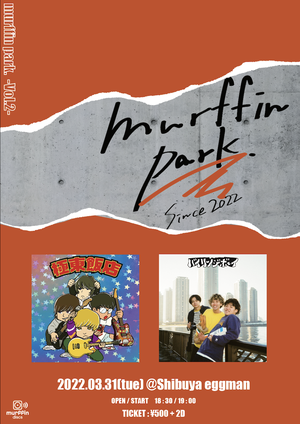 『murffin park. -Vol.2-』は今年3月にmurffin discsからデビューが決定しているバイリンジボーイが、アンテナの高い音楽リスナーやアーティストからも注目を浴びている極東飯店を迎えて3月31日に開催される。