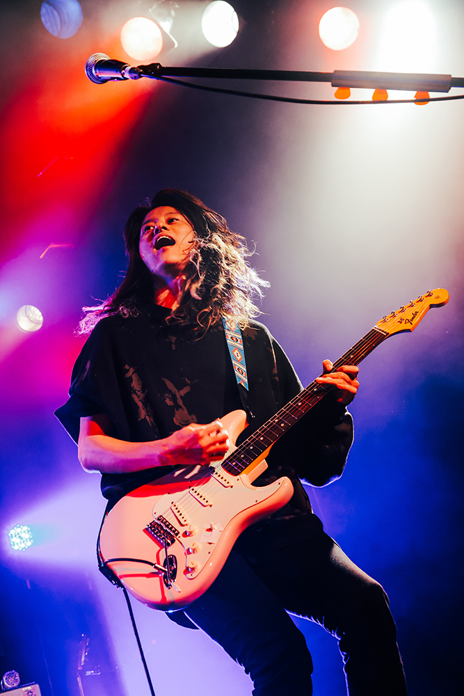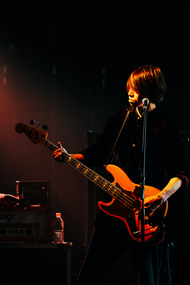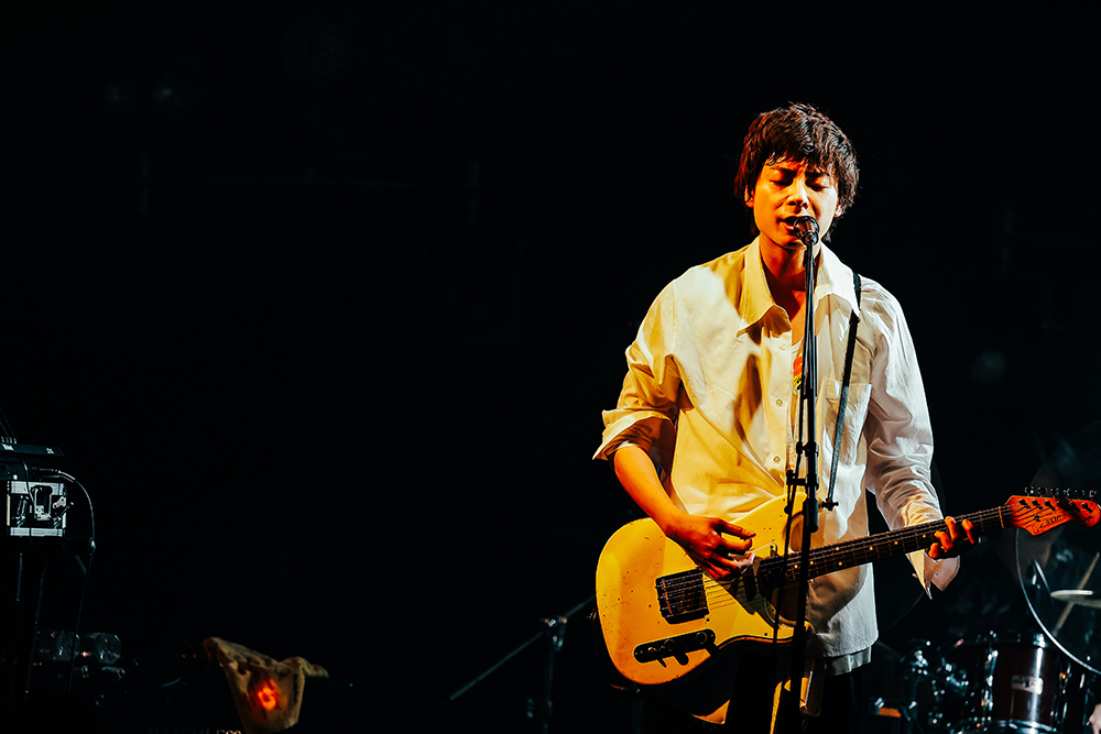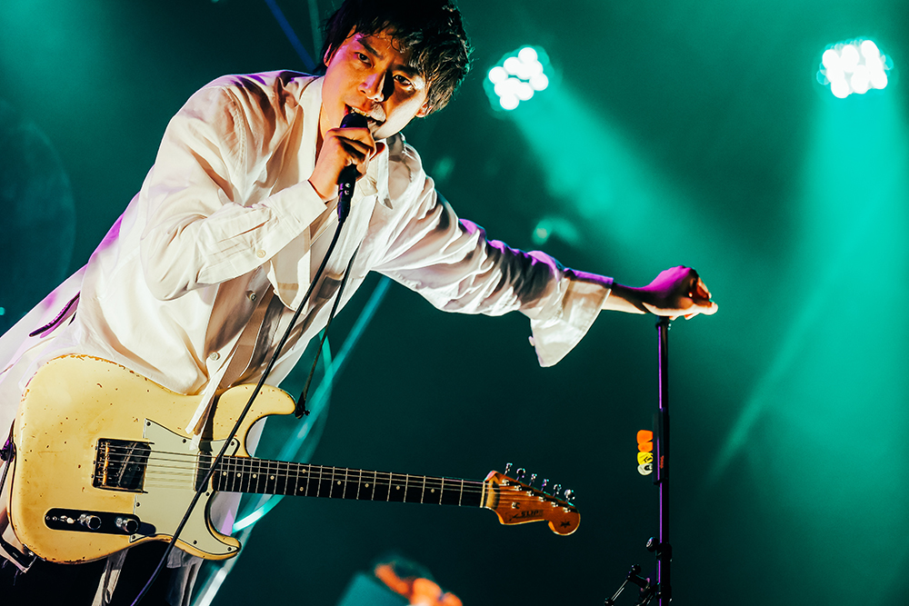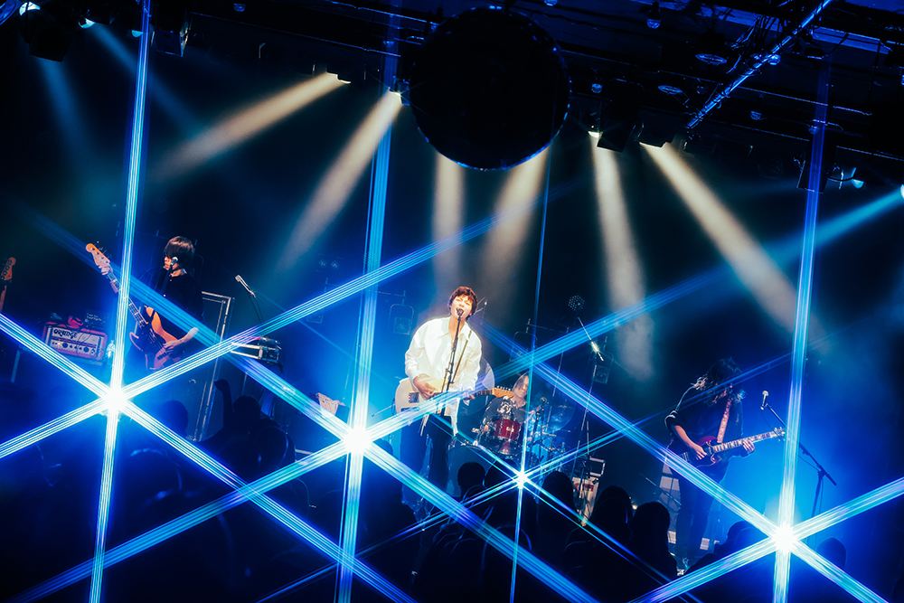 そして主催バンドであるLEGO BIG MORLが登場。この日はデビューアルバム『Quartette Parade』収録の「ワープ」でスタートし、15周年イヤー最初の配信リリース曲「潔癖症」と続いていく。その後もメジャーデビュー時の楽曲「cinderella syndrome」や「Ray」「愛を食べた」など、LEGOの代表的なナンバーが繰り出される。MCではthe telephonesとの昨年末に決まった2マンがようやく実現し、コロナが広がるこの状況下でもライブでステージに立ち拍手を頂けることの有り難みと感謝の意を伝えた。