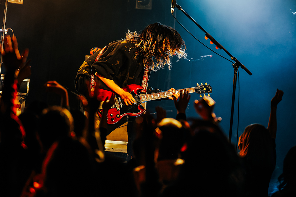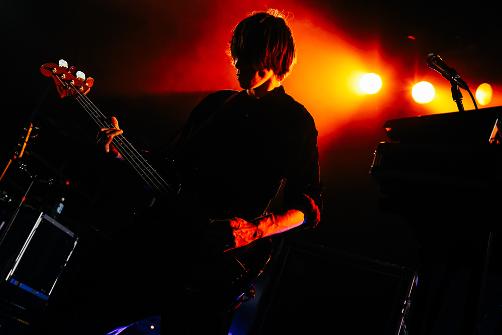 後半戦に入っていくと、ライブ前にプレゼントされたサングラスを全員で身に付け、the telephonesのカバー曲「Love&DISCO」を披露するサプライズ演出。途中でカナタタケヒロ(Vo & Gt)から「やっぱりこの人と歌いたいわ!」と呼び込みがあると、石毛 輝(VOX/GUITAR/SYNTHESIZER)が登場し一緒にステージで熱唱。会場の熱気はより加速し、終盤では彼らが歌い続けている楽曲の一つである「RAINBOW」のイントロが鳴り始め、演奏中にカナタ、タナカ、ヤマモトシンタロウ(Ba)の3人と、サポートドラムの吉田昇吾(UNCHAIN)のメンバー紹介をして終えるとオーディエンスとの一体感が完成した。