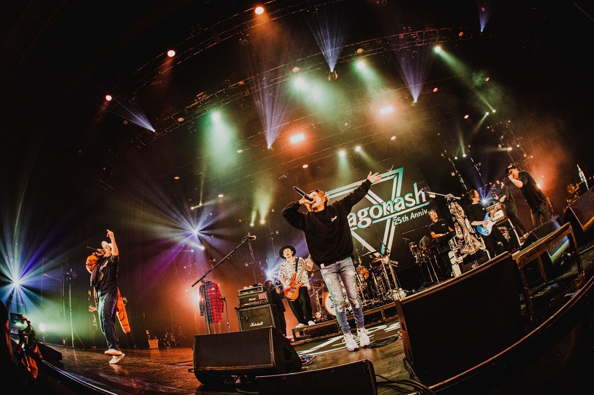 そんな盛り上がりはKjがハンドマイクでラップする「ダイアログ」「Jump」「Canvas」の3曲を経て、Dragon Ashを代表するライブアンセム「百合の咲く場所で」で最高潮に達した――と思いきや、「25周年おめでとうございます! 援護射撃に来ました!」とラッパ我リヤが登場したハードロッキンなミクスチャーロックナンバー「Deep Impact」、曲が持つ胸を焦がすようなエモさに気持ちを持っていかれた「Lily」とライブのハイライトを更新しながら、山嵐のSATOSHI、GNz-WORDのKO-JI ZERO THREEを迎えたアンセミックなロックナンバー「ROCK BAND」でついにピークアウト。もちろん、「Episode 4」「Deep Impact」も25周年の記念ライブにふさわしい大きな見どころには違いなかったが、駆け出しのバンドマンだった頃を振り返りながら、ロックバンドを称えるこのアンセムが、「この曲があったから今までやってこられました」というKjの言葉とともに観客に見せた青春譚を思えば、この曲を一番の見どころとすることに反対する人はいないんじゃないか。