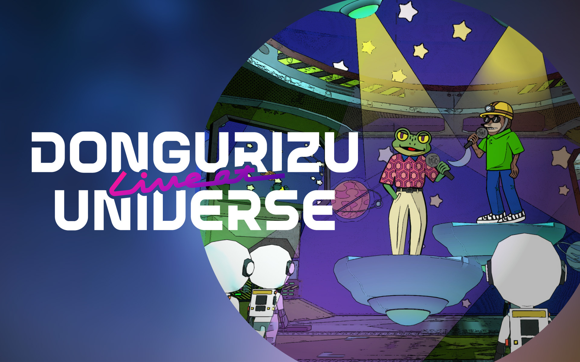 VRライブ「DONGURIZU Live at UNIVERSE」は、VR表現技術を突き詰めることでアーティストが望む高品質な表現を可能にしており、現実空間では味わうことのできない仮想空間ならではのライブを体験できるものとなっている。今回のVRライブは凸版印刷株式会社によるVR空間における音楽ライブの芸術表現技術と大規模同時接続に関する研究実証(POC)として実施され、栄えある第一弾アーティストとして「NO WAY」が世界各国でヒット中のどんぐりずが選出された。
